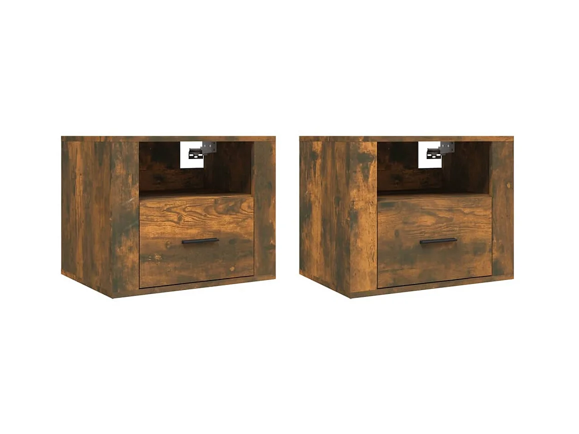 2er-Set Wand-Nachttische Nachtschrank Räuchereiche 50x36x40 cm -RN61134