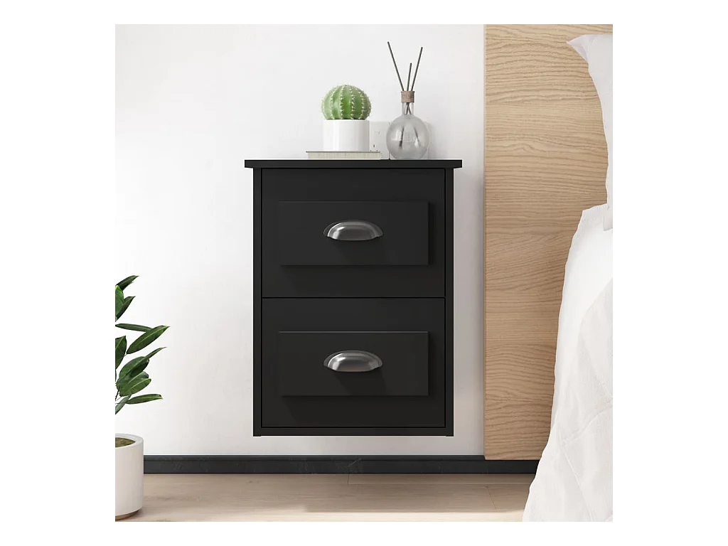 2er-Set Wand-Nachttische Nachtschrank Schwarz 41,5x36x53 cm -RN96432