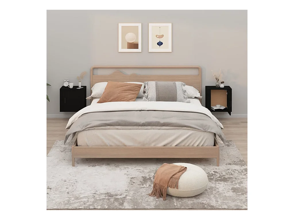 2er-Set Wand-Nachttische Nachtschrank Schwarz 50x30x47 cm -RN90262