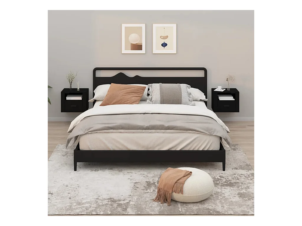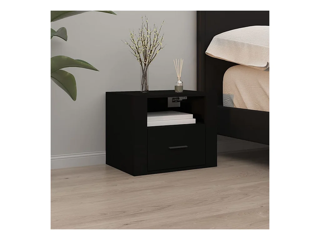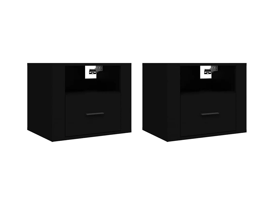 2er-Set Wand-Nachttische Nachtschrank Schwarz 50x36x40 cm -RN21707