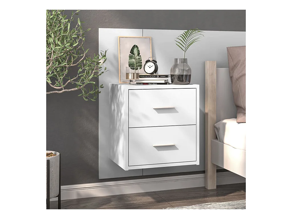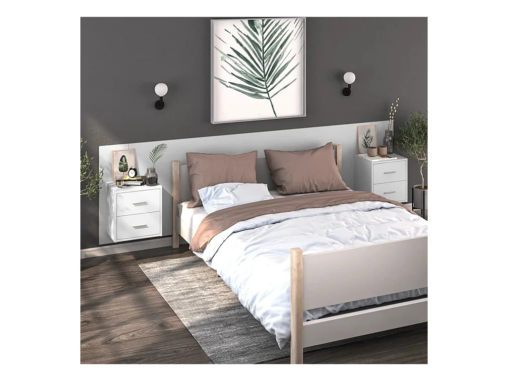 2er-Set Wand-Nachttische Nachtschrank Weiß -RN42140