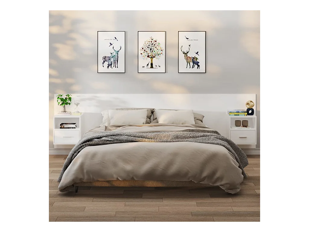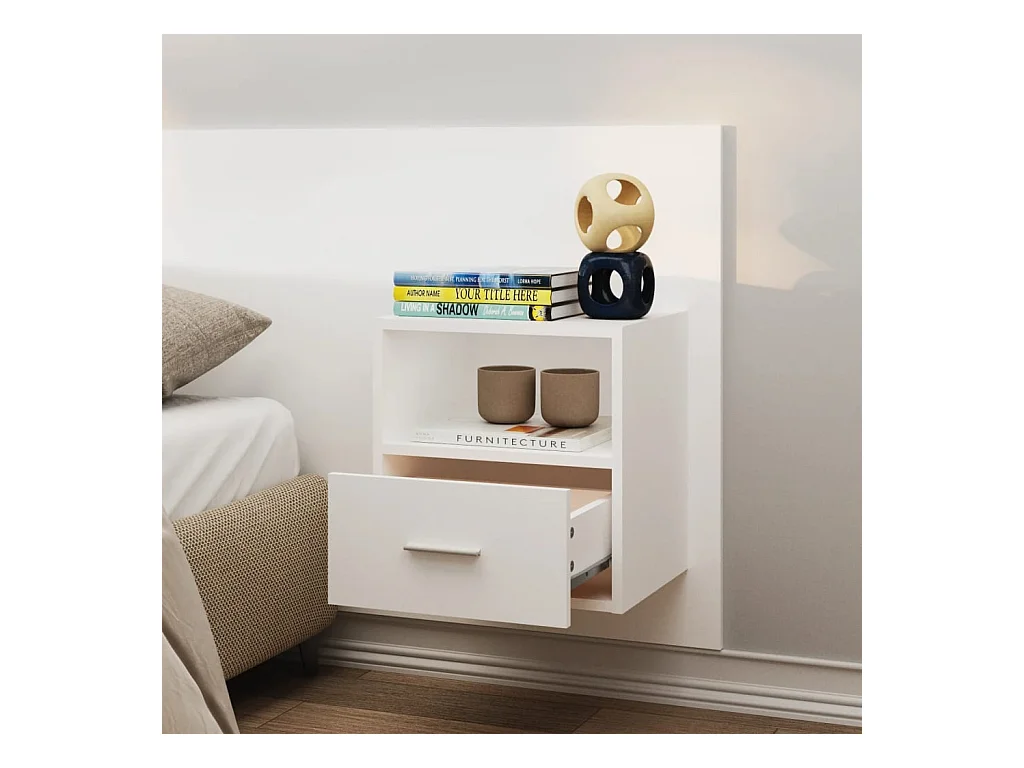 2er-Set Wand-Nachttische Nachtschrank Weiß -RN72132