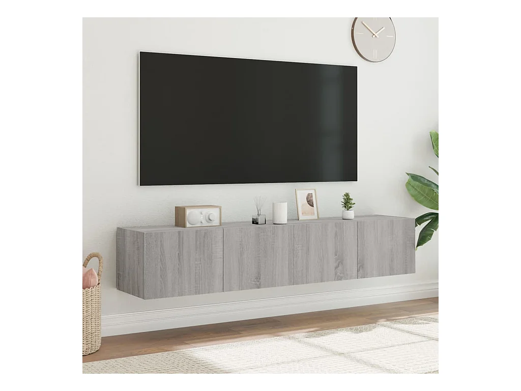 2er TV-Schränke,TV-Wandschränke mit LED-Leuchten Grau Sonoma 80x35x31 cm -gkd460049