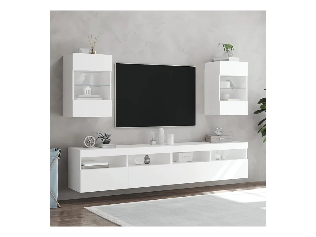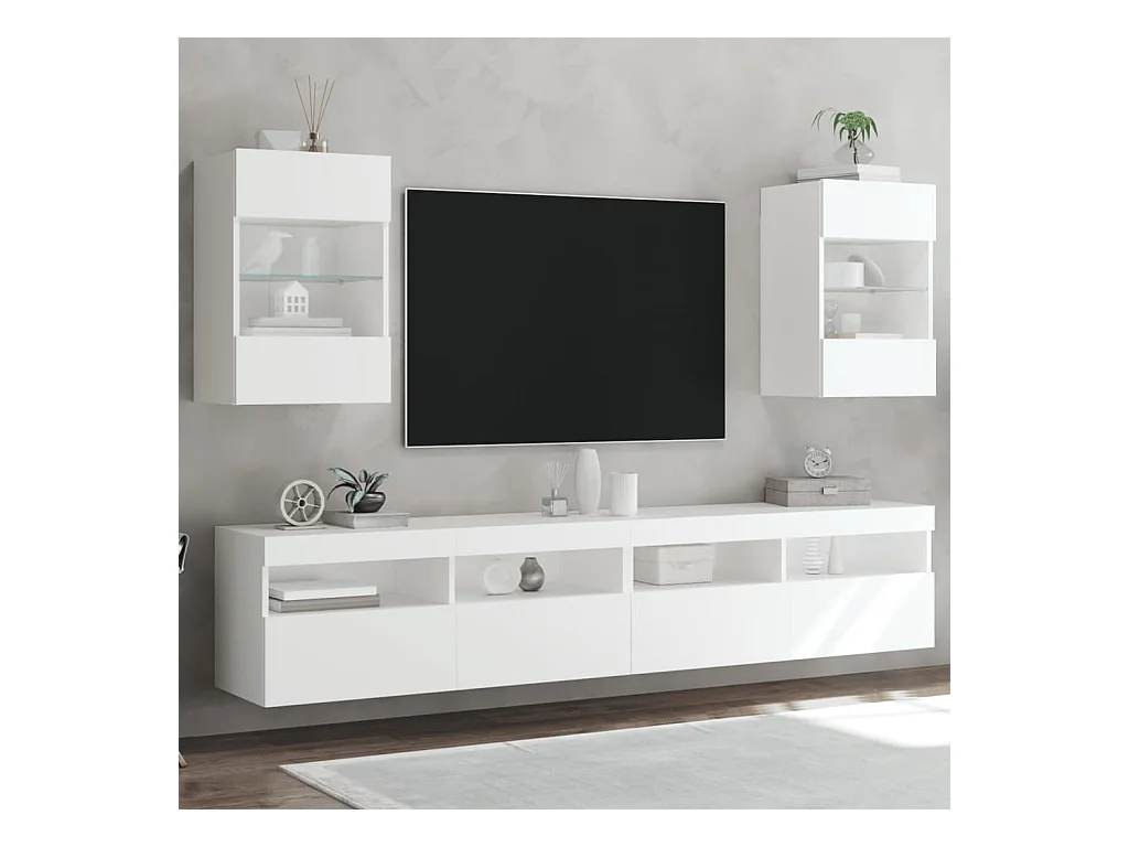 2er TV-Schränke,TV-Wandschränke mit LED-Leuchten Weiß 40x30x60,5 cm -gkd145991