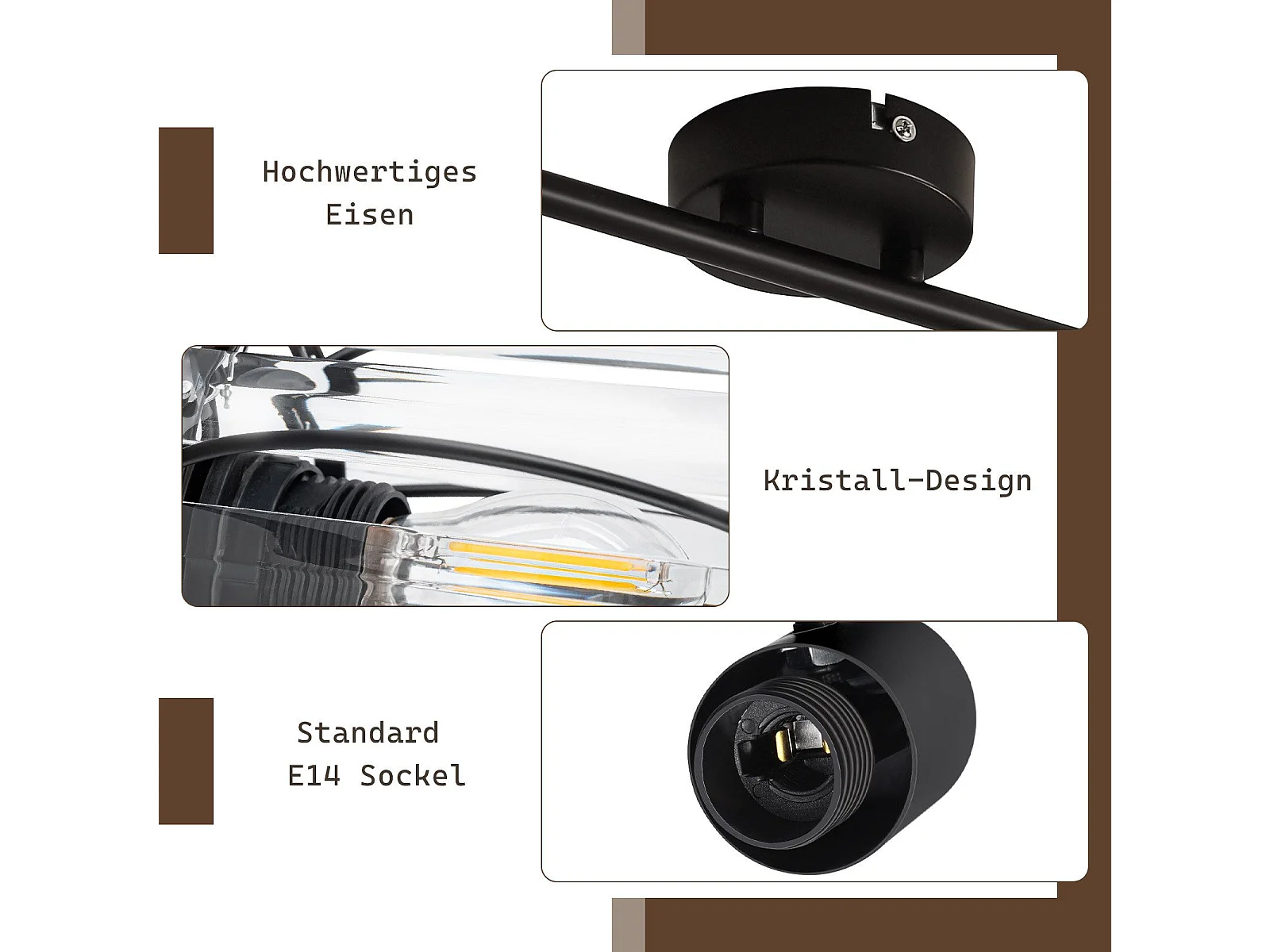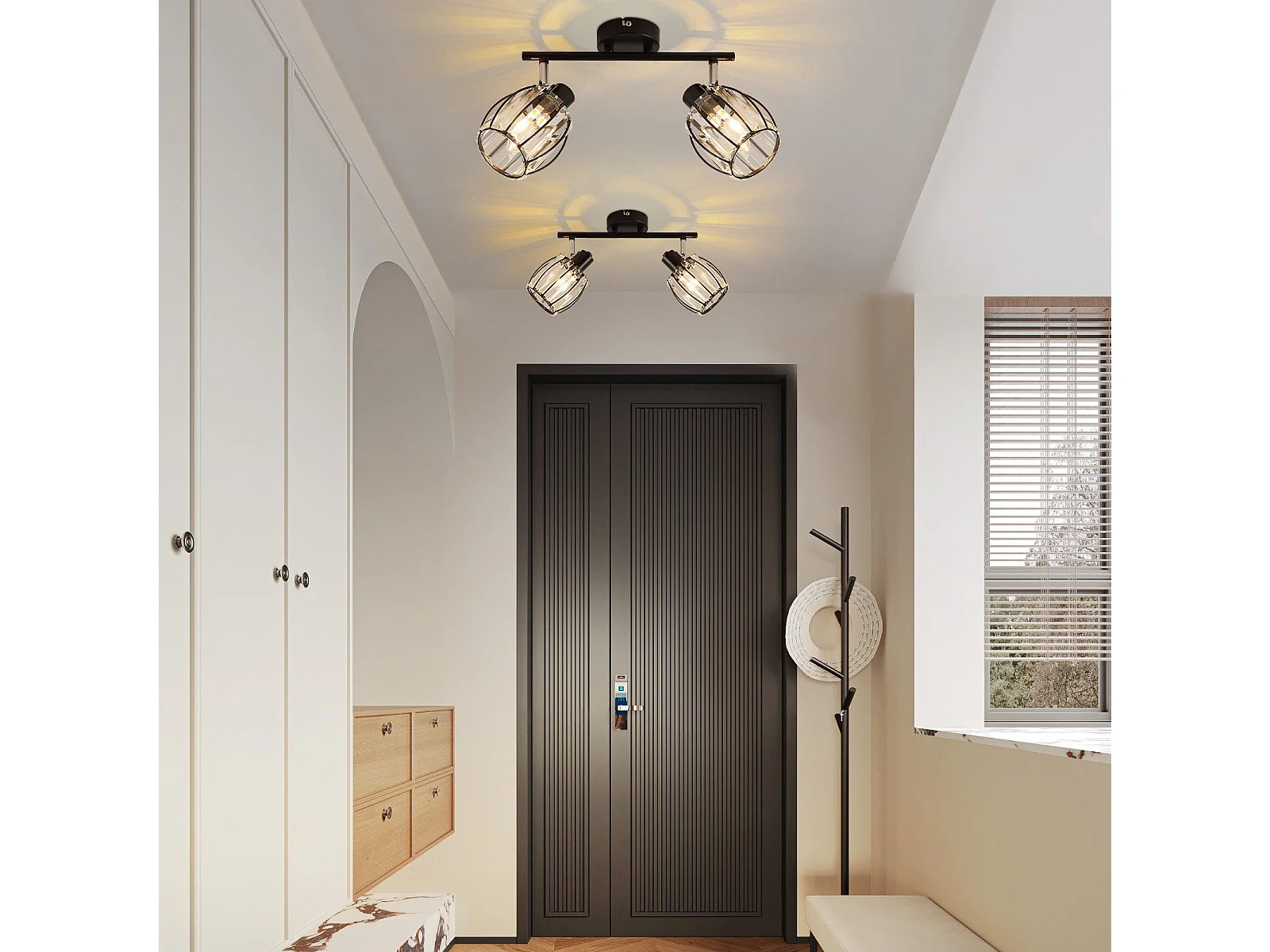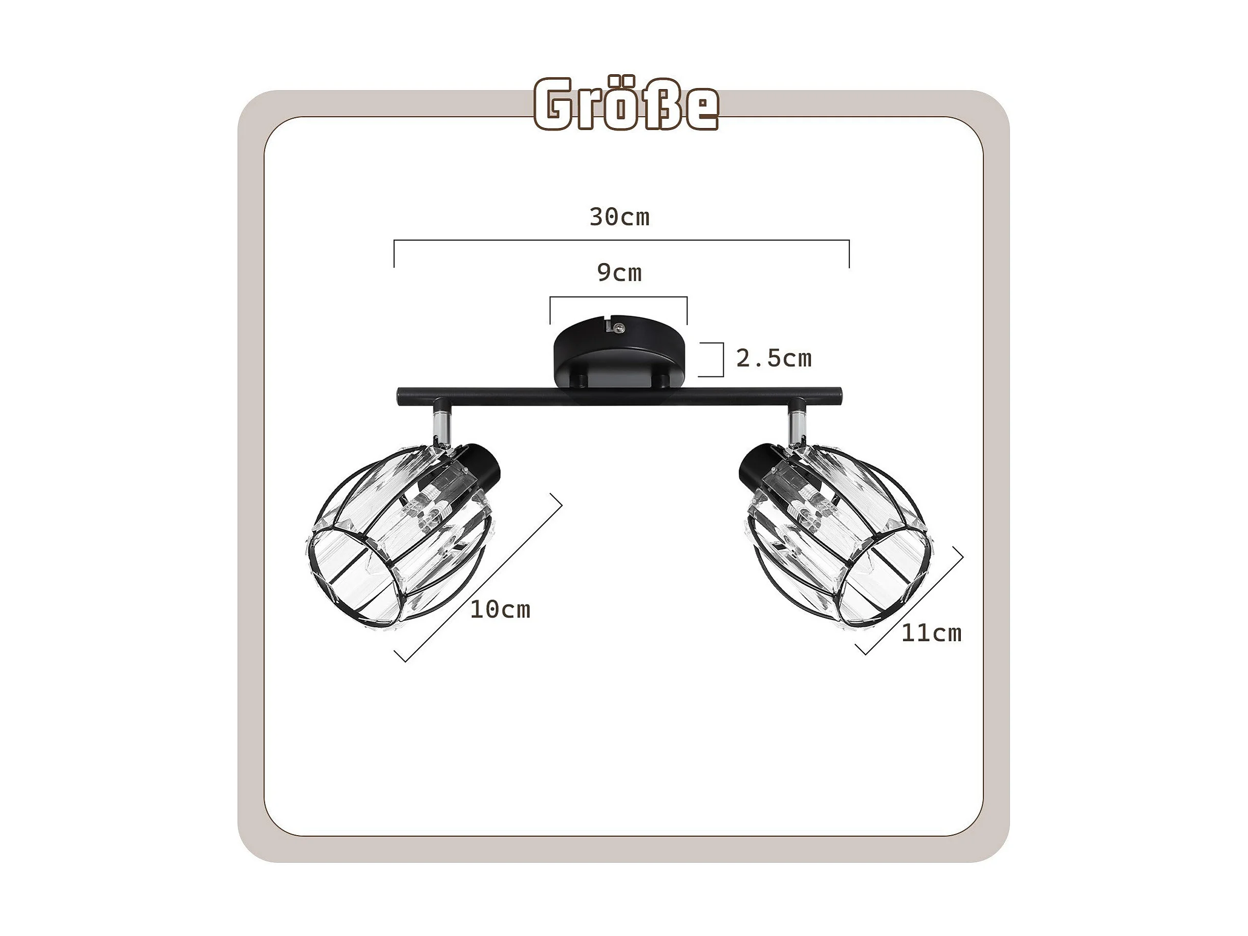 2er Vintage Schwarz Kristall Deckenstrahler E14 für Industrie Flur 350° Schwenkbar
