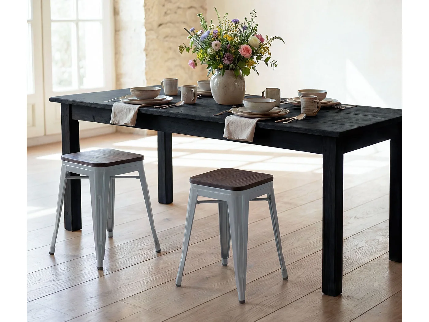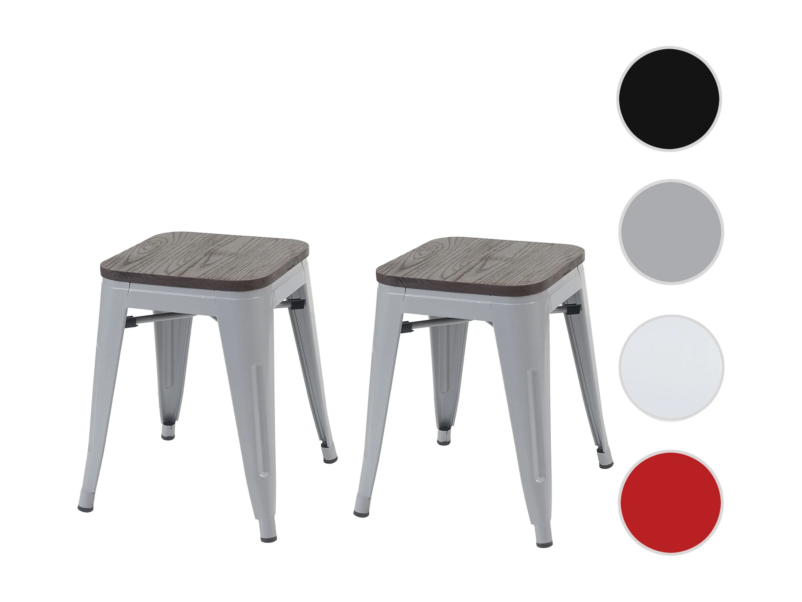 Hocker MCW-A73 (2er-Set) Holz-Sitzfläche, Grau