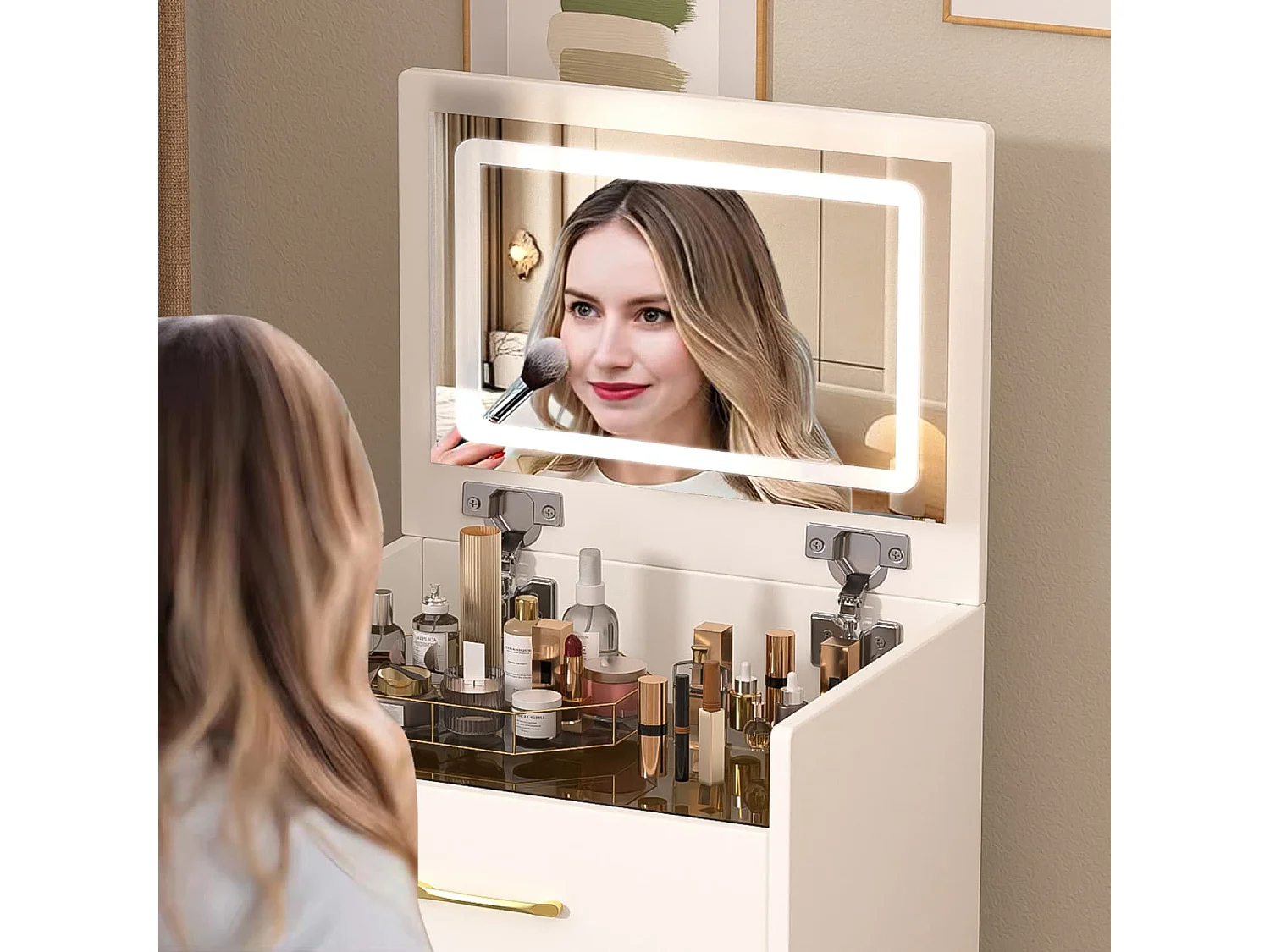 3-in-1-Schminktisch mit offenem Spiegel,kleines Schminktisch-Set mit Tischplatte aus Klarglas,kompakter Schminktisch mit 3 Schubladen,B60/H118/T40 cm