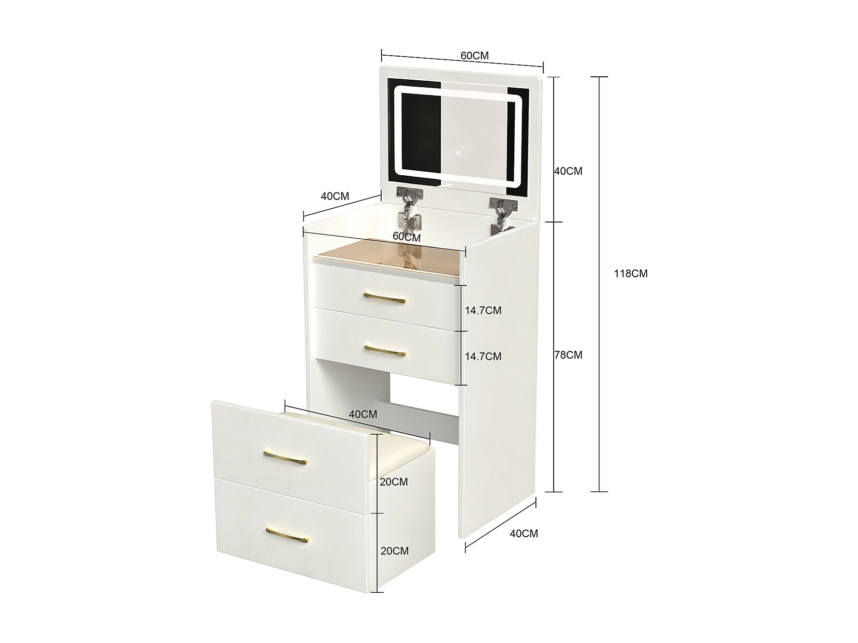 3-in-1 Schminktisch mit offenem Spiegel und 3 Schubladen Kosmetiktisch B60/H118/T40 cm
