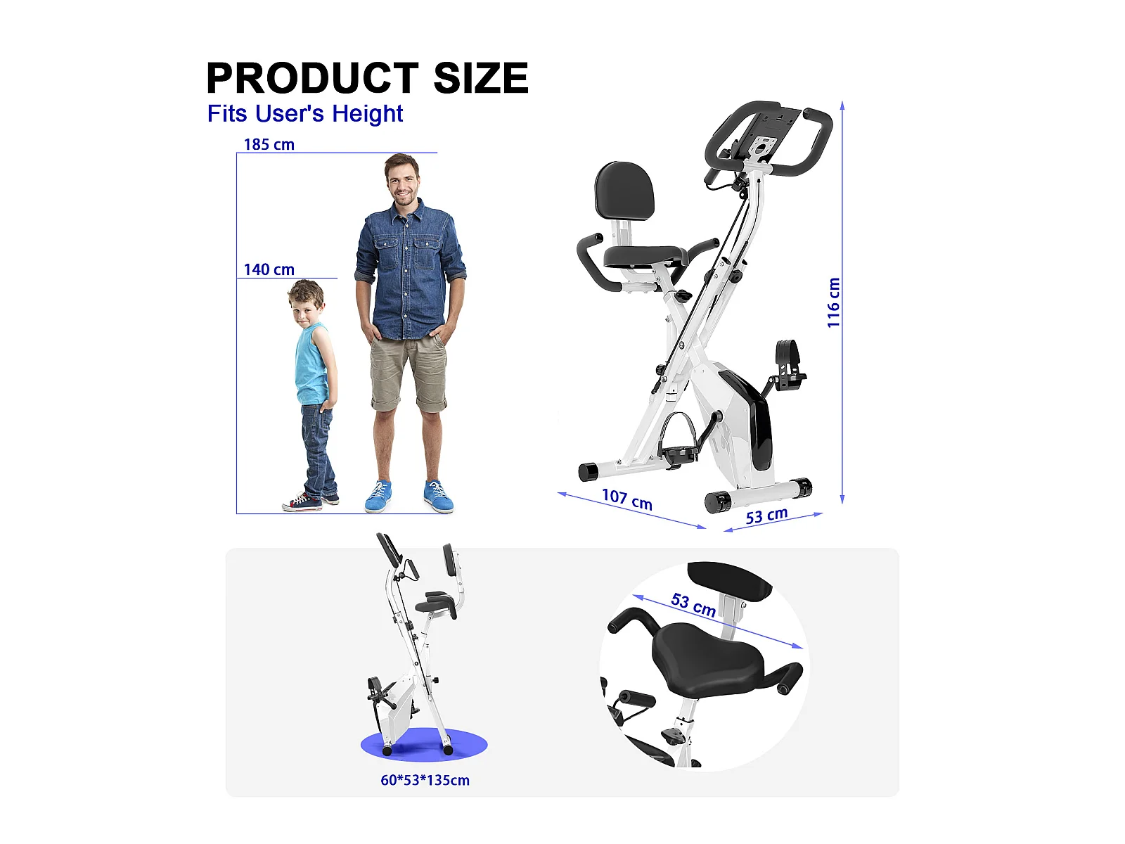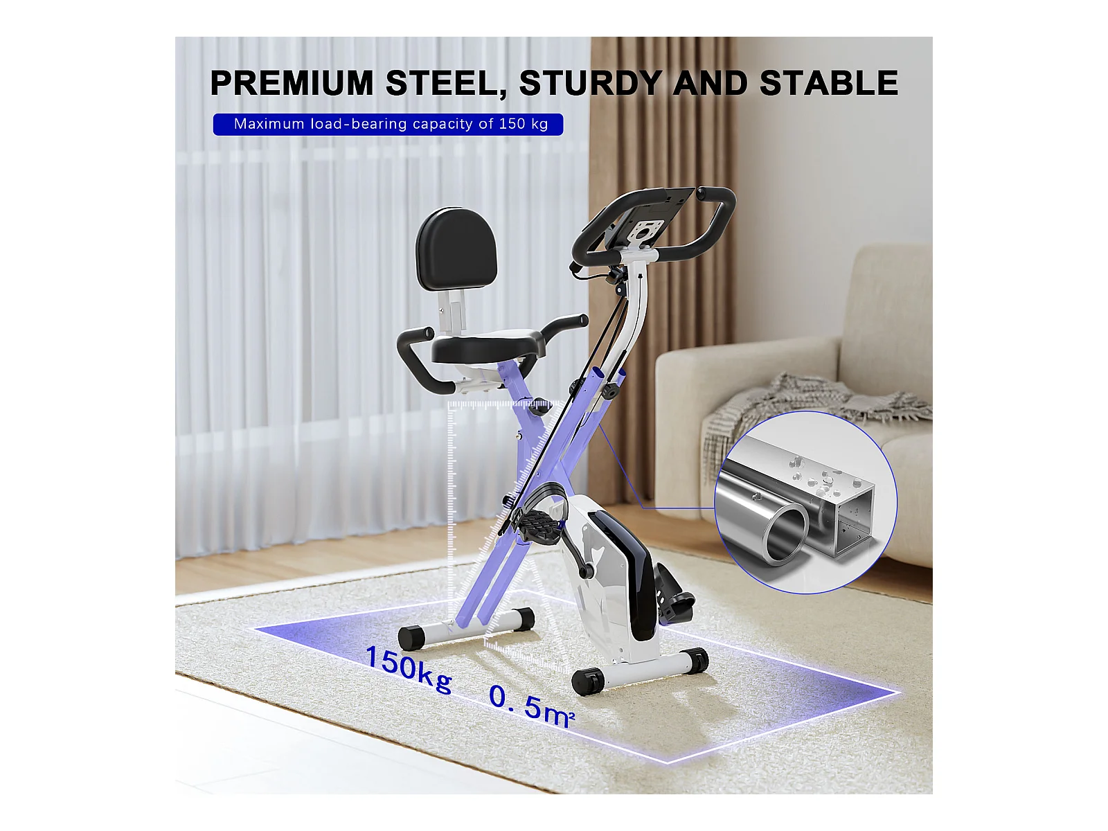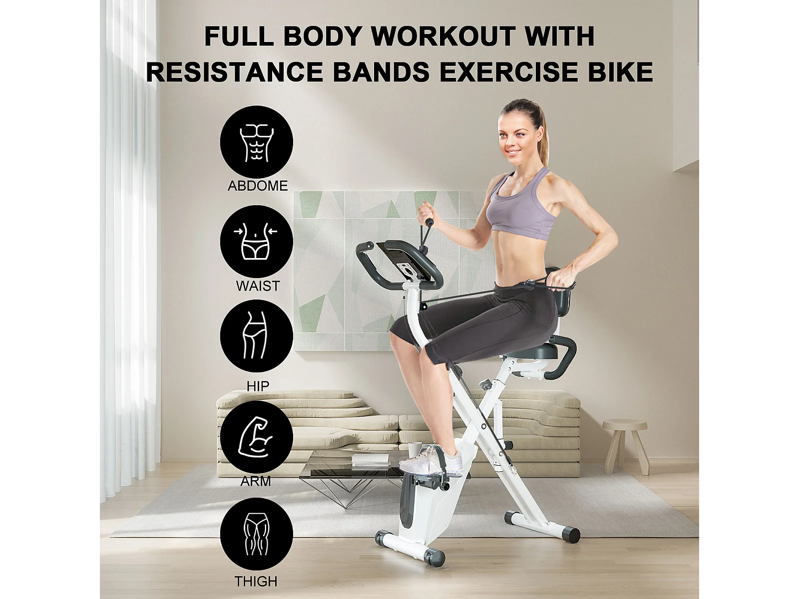 3 in 1 zusammenklappbarer Heimtrainer, Magnetisches X-Bike Liege-Fitnessrad mit 8-stufig einstellbarem Widerstand für das Training im Fitnessstudio