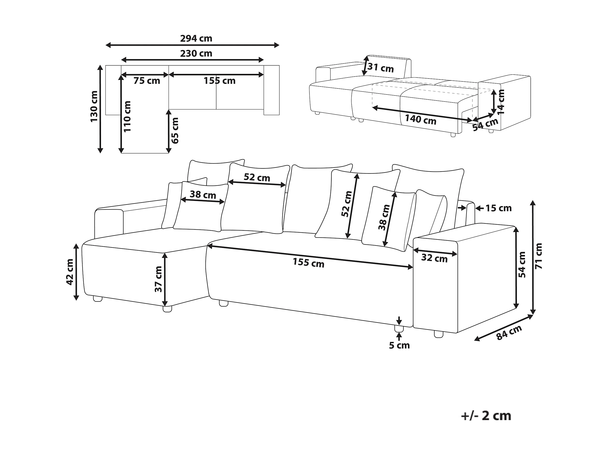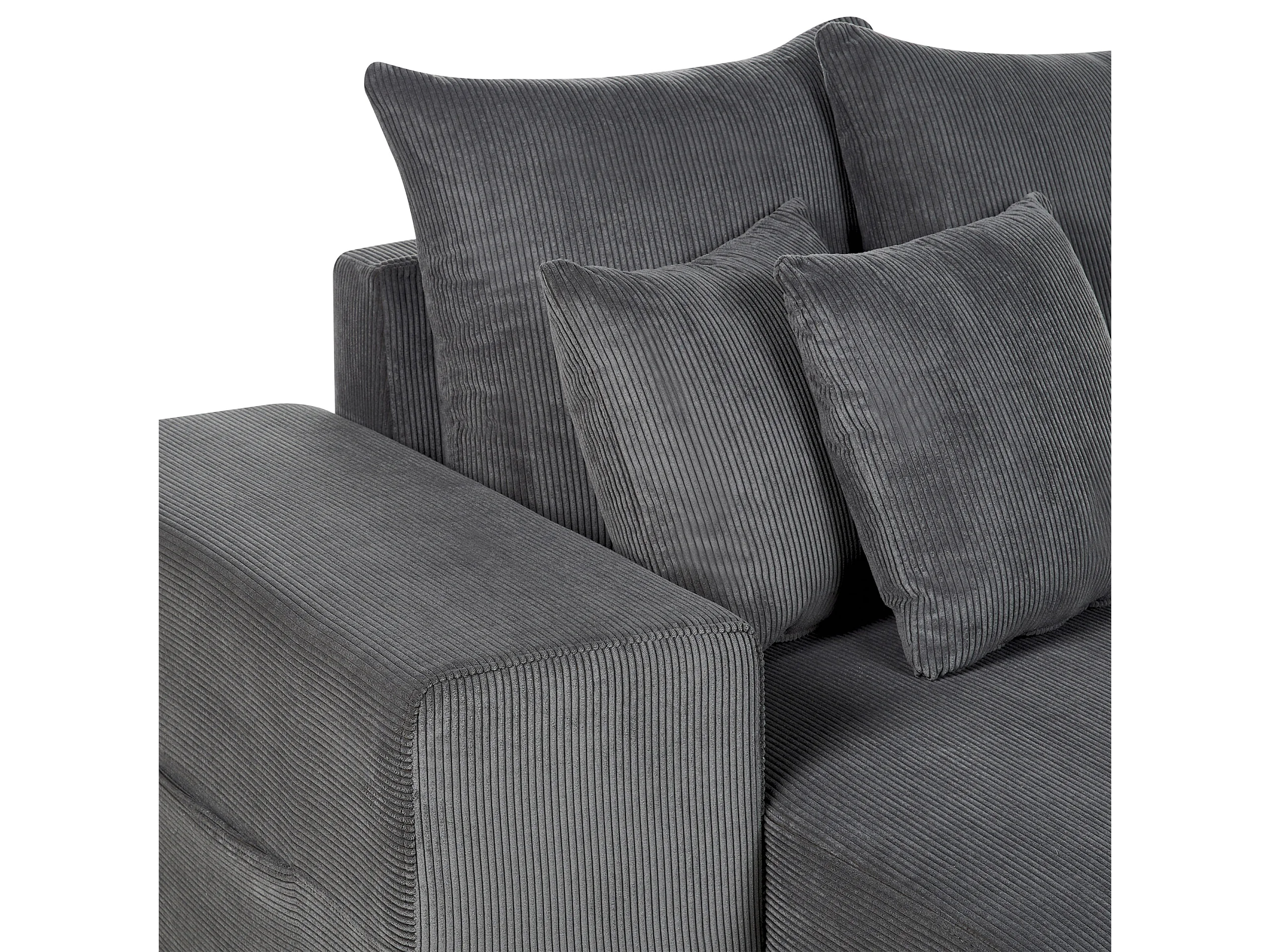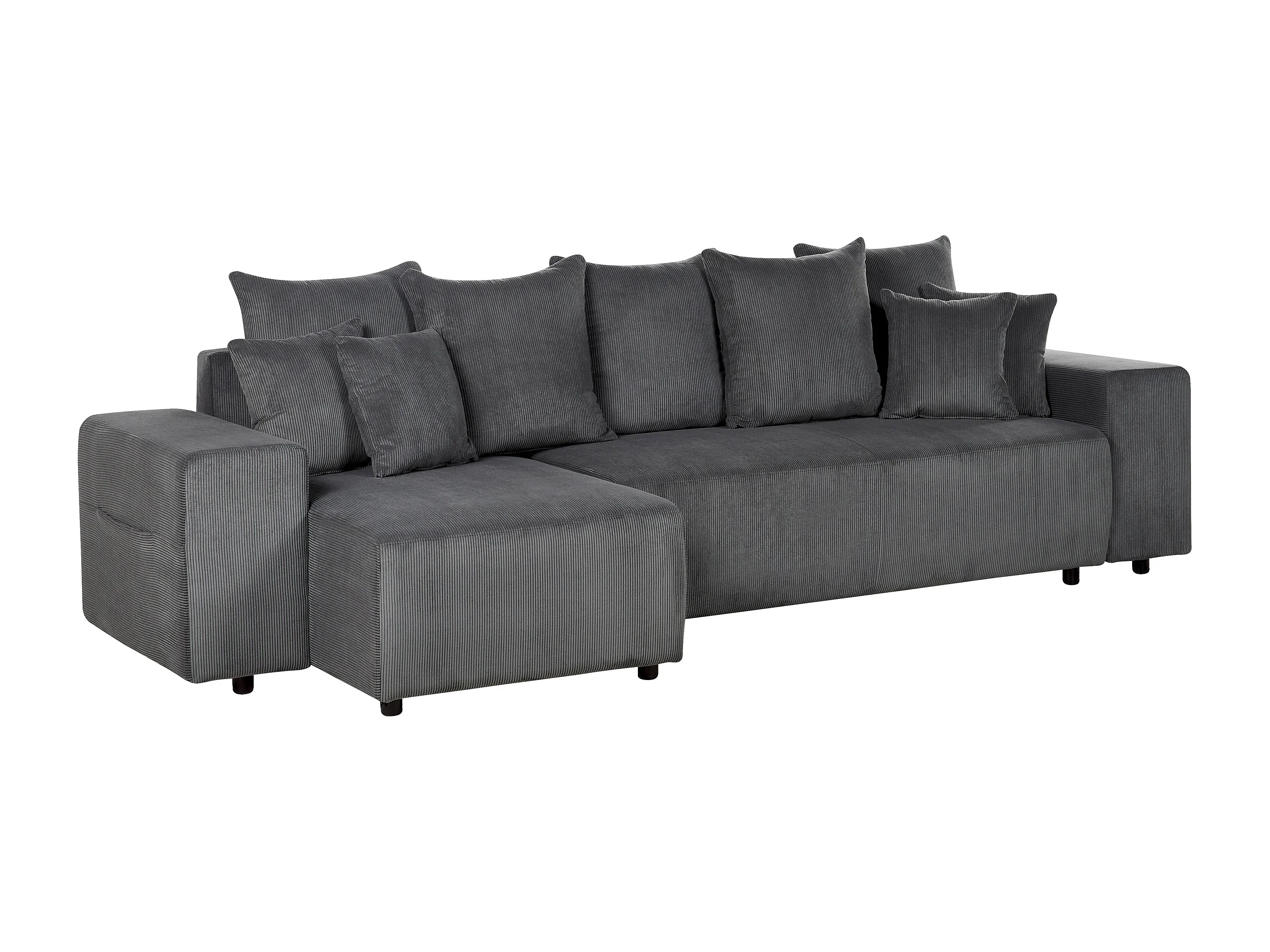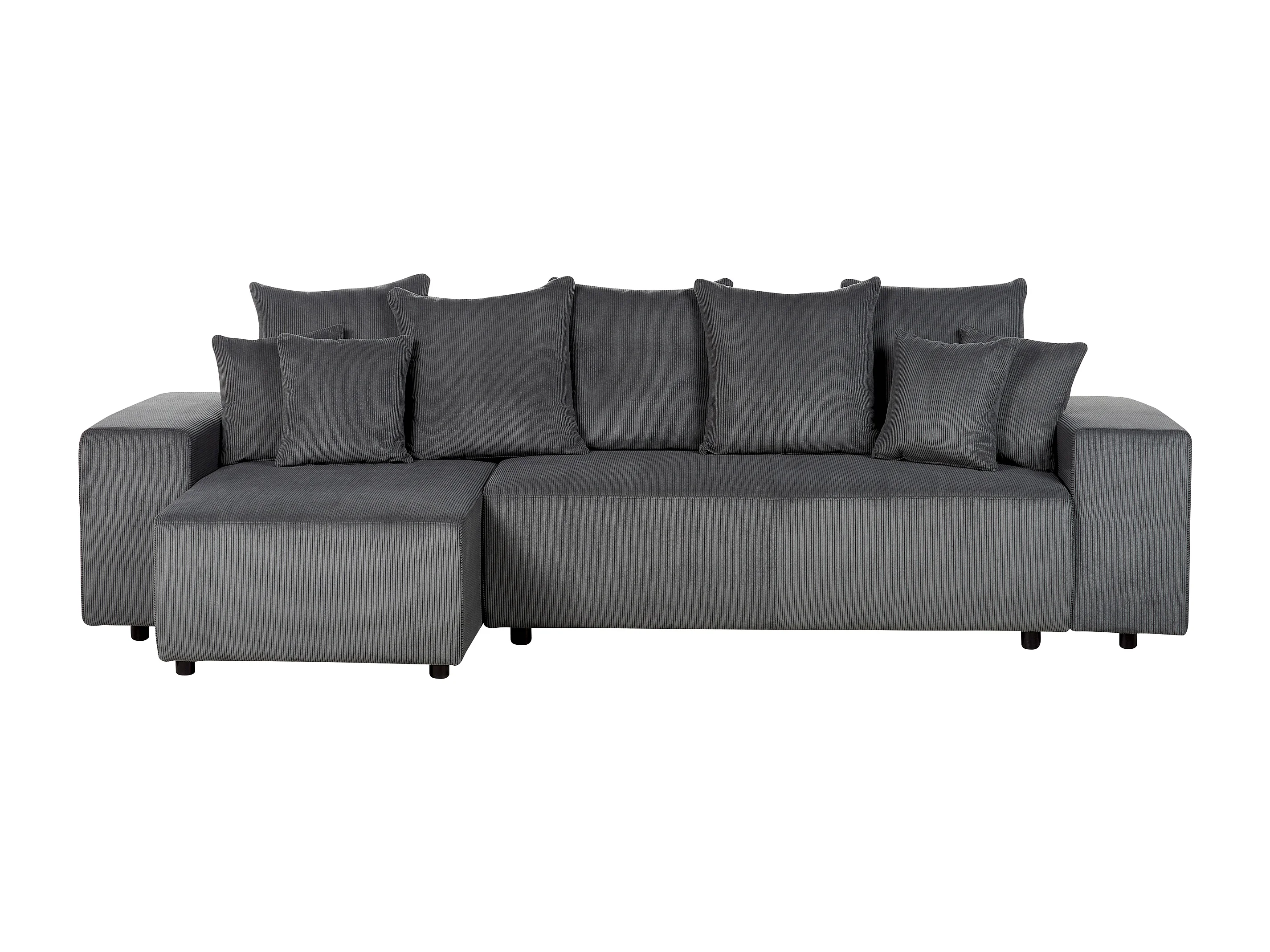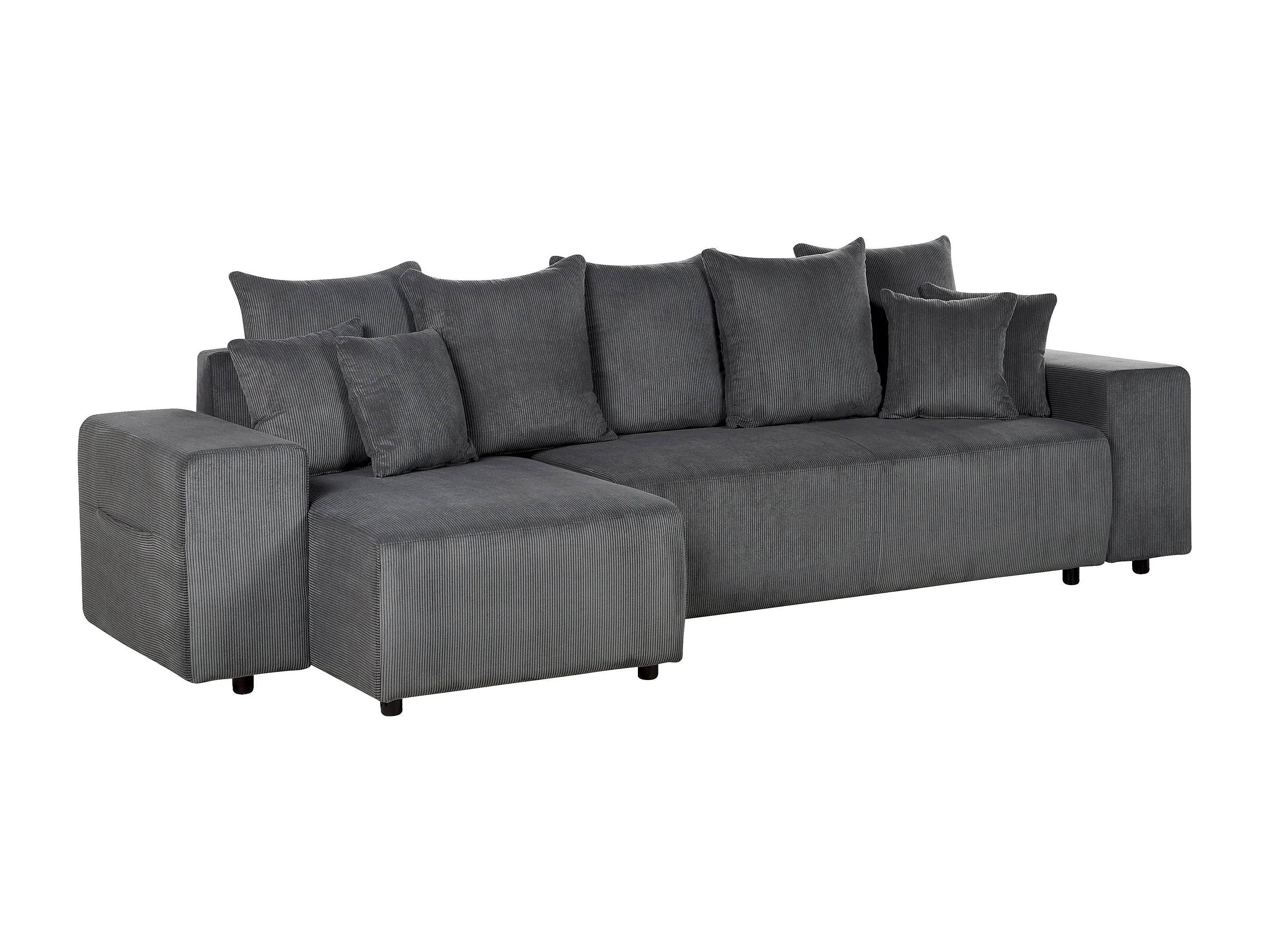 3-Sitzer Ecksofa Cord grau mit Schlaffunktion Stauraum Chaiselongue rechts Luspa
