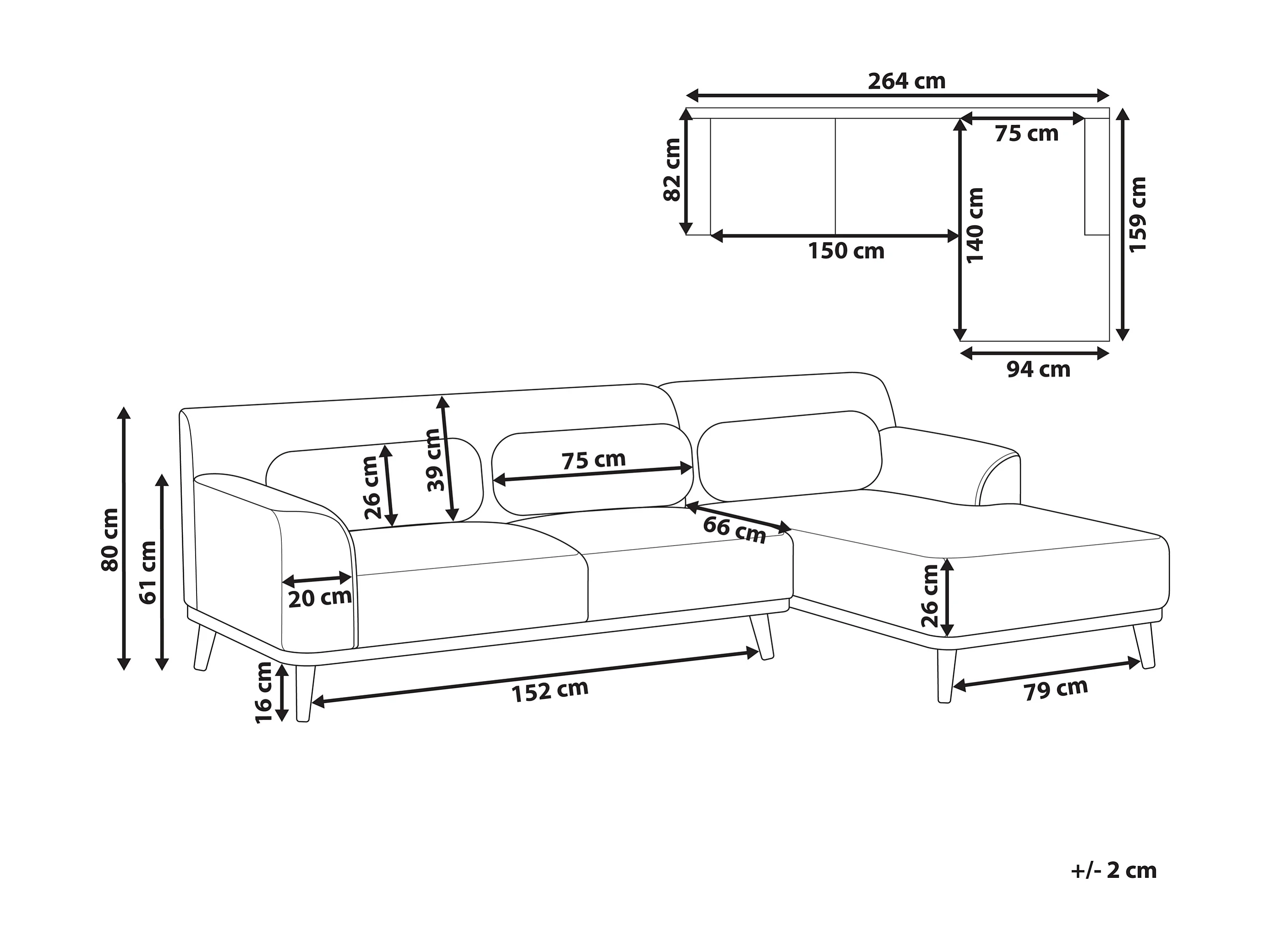 3-Sitzer Ecksofa L-förmig Cord grün mit Chaiselongue links mehrere Kissen Simos