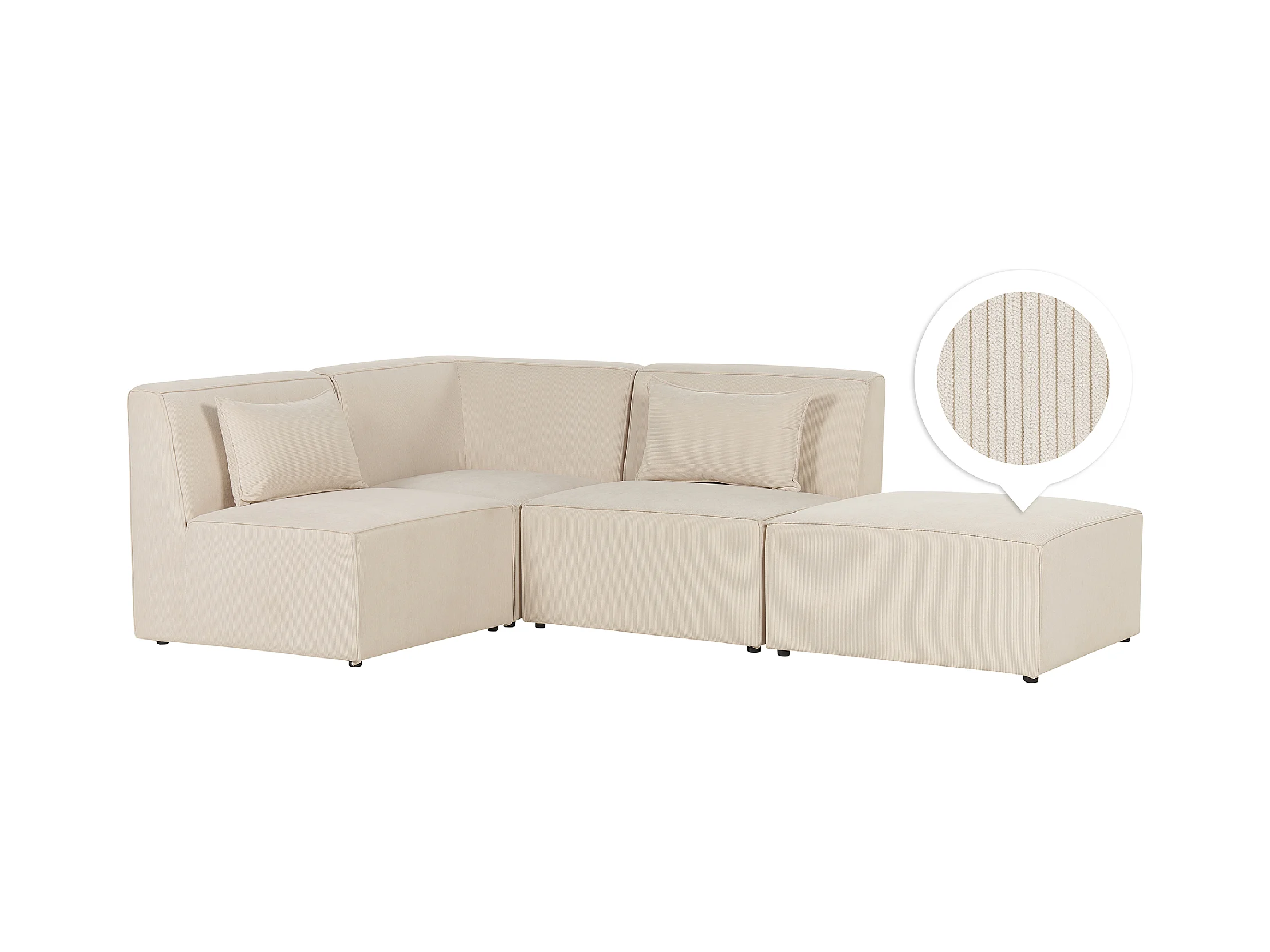 Modul Ecksofa LEMVIG Cord Hellbeige mit Ottomane 3-Sitzer rechtsseitig