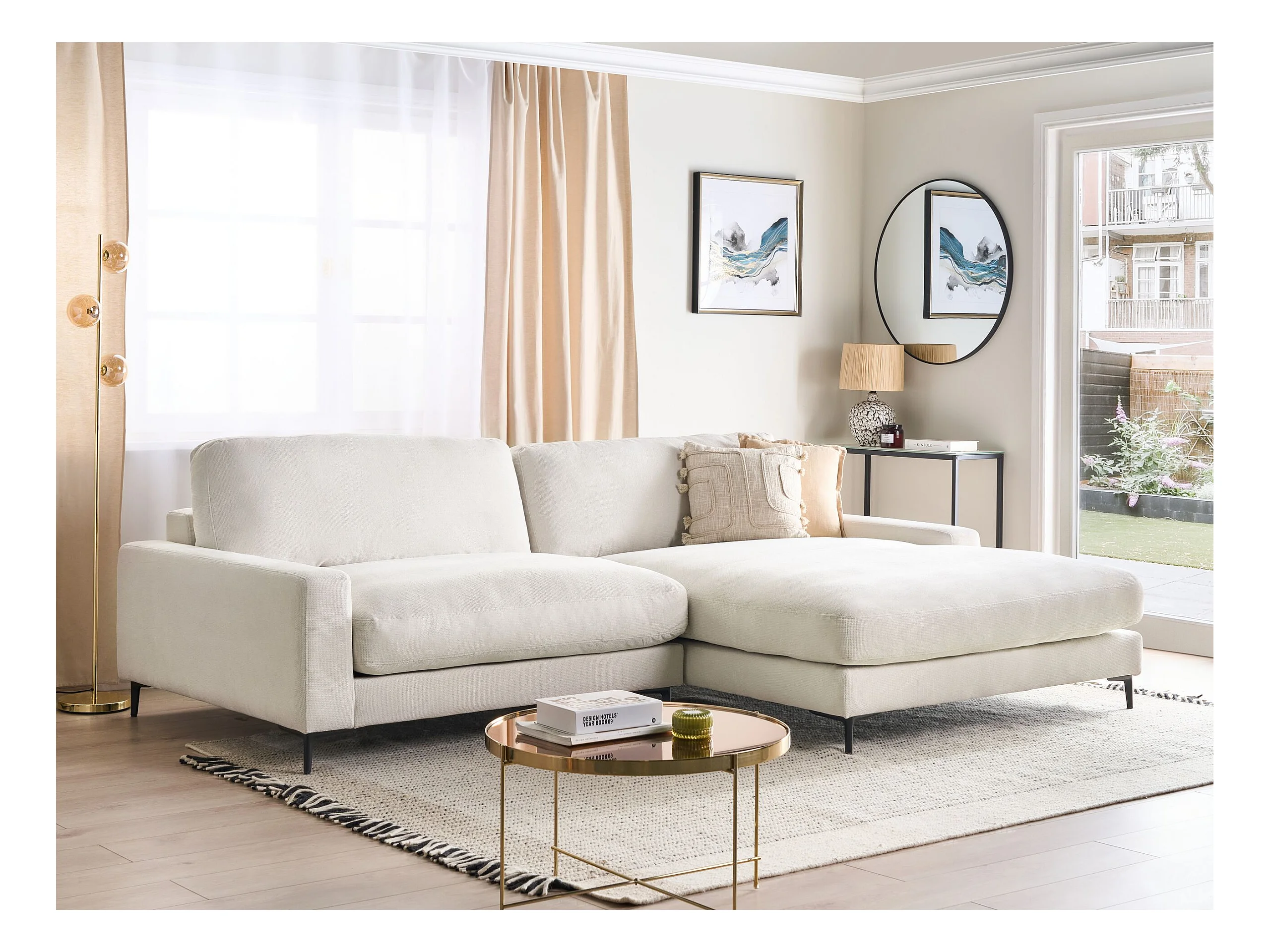 Ecksofa MALOY Chenillegewebe Cremeweiss 3-Sitzer linksseitig