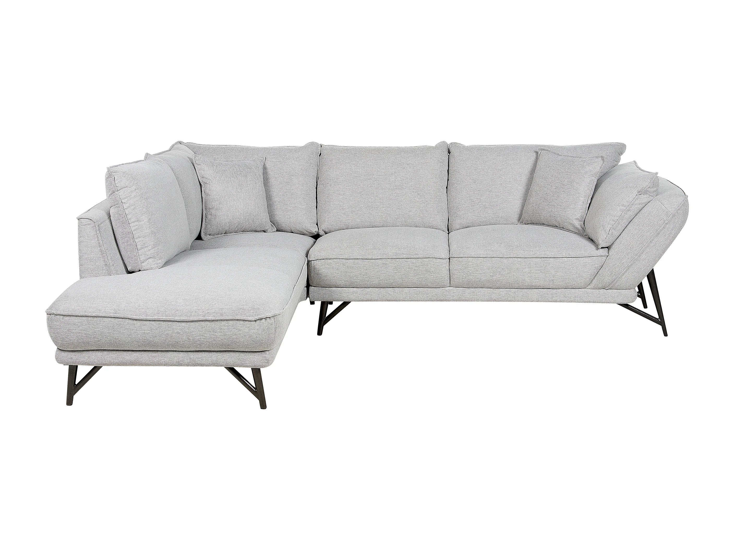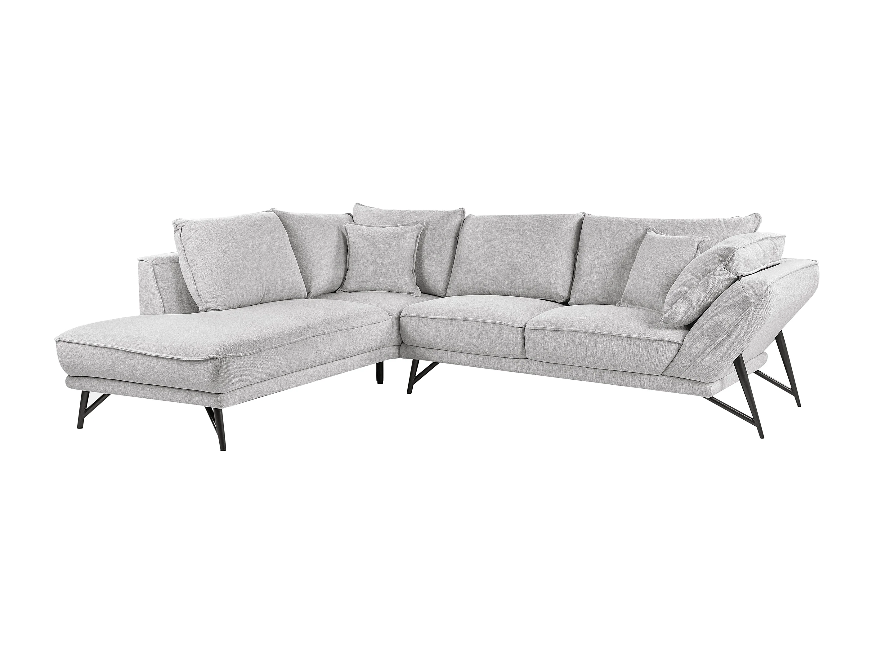 Ecksofa 3-Sitzer aus Leinen grau rechtsseitig L-Form modern schwarze Beine Elga