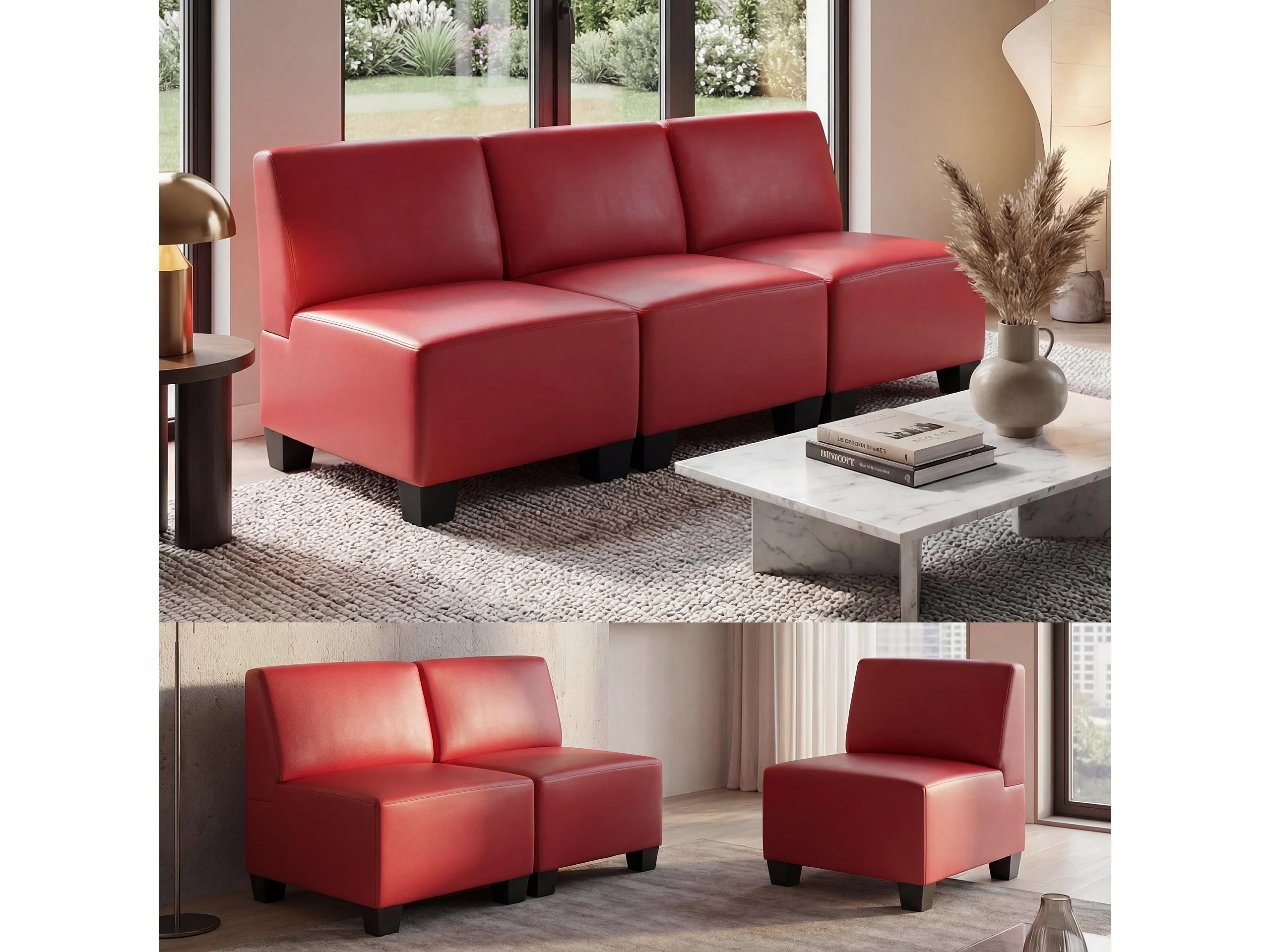 3-Sitzer Moncalieri, Rot, ohne Armlehnen