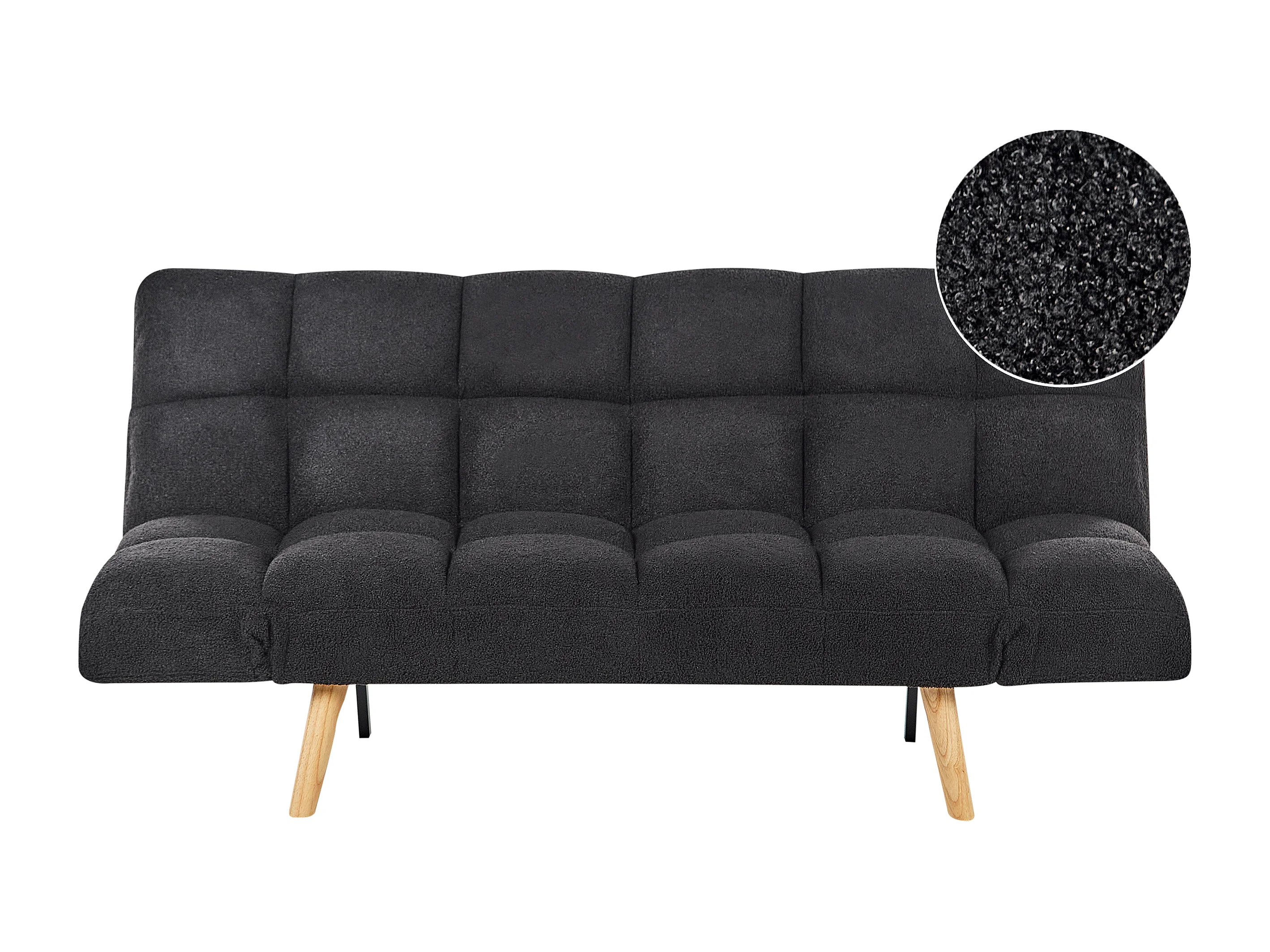 3-Sitzer Schlafsofa Bouclé schwarz gesteppt verstellbare Armlehnen Ingaro