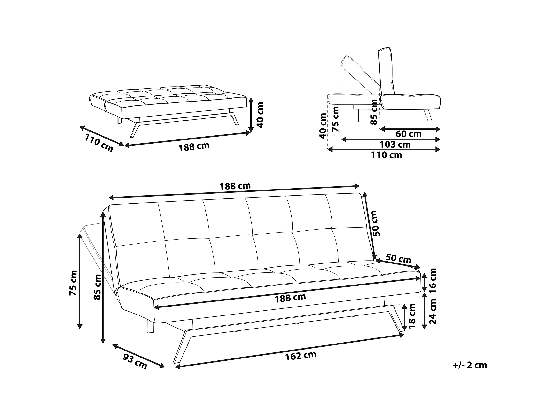 Schlafsofa LEEDS Stoff Weiss 3-Sitzer
