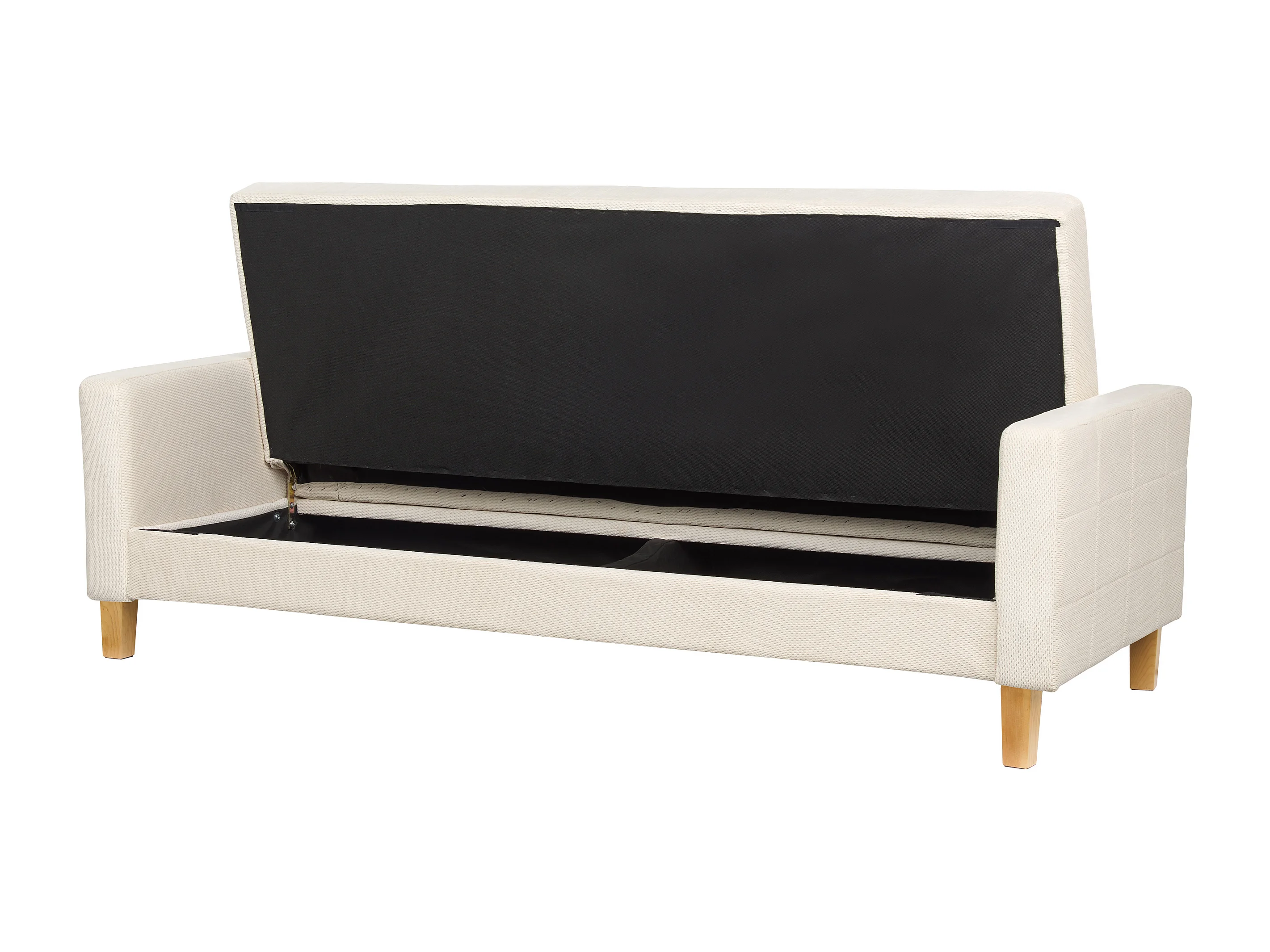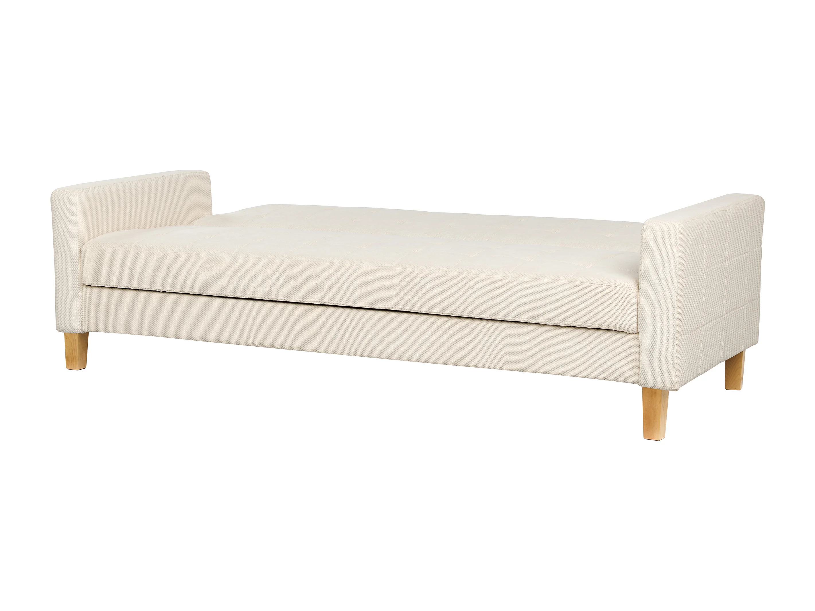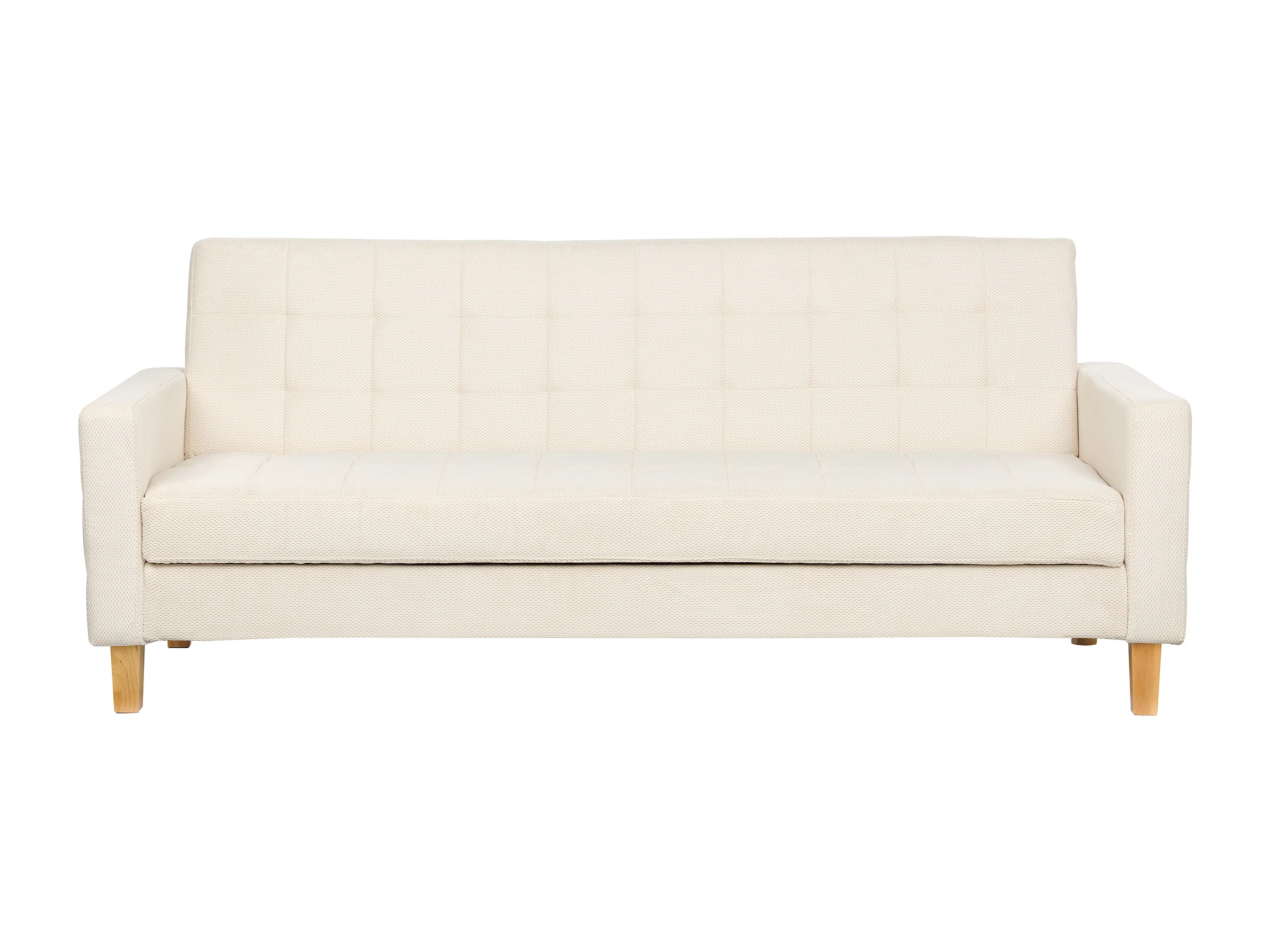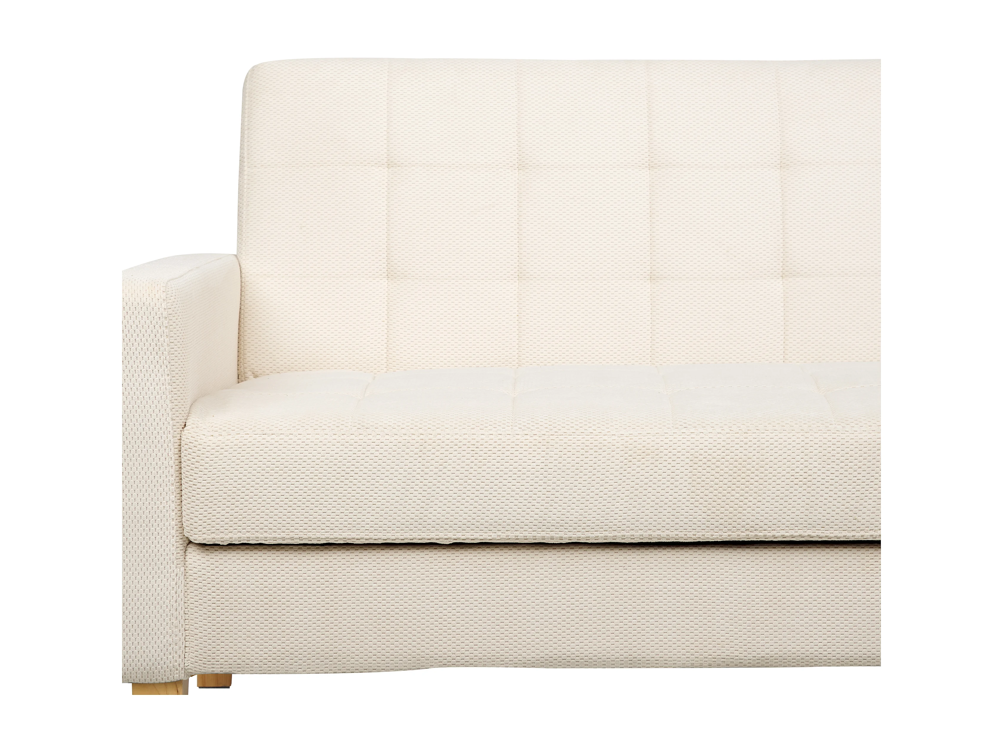 3-Sitzer Sofa mit Schlaffunktion Stoffbezug weiß gesteppt Holzbeine Retro Vehkoo