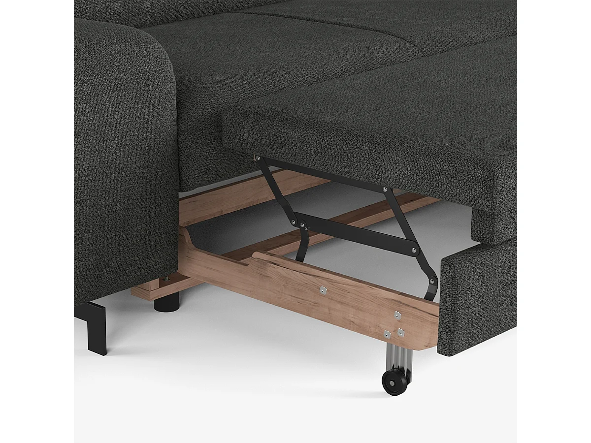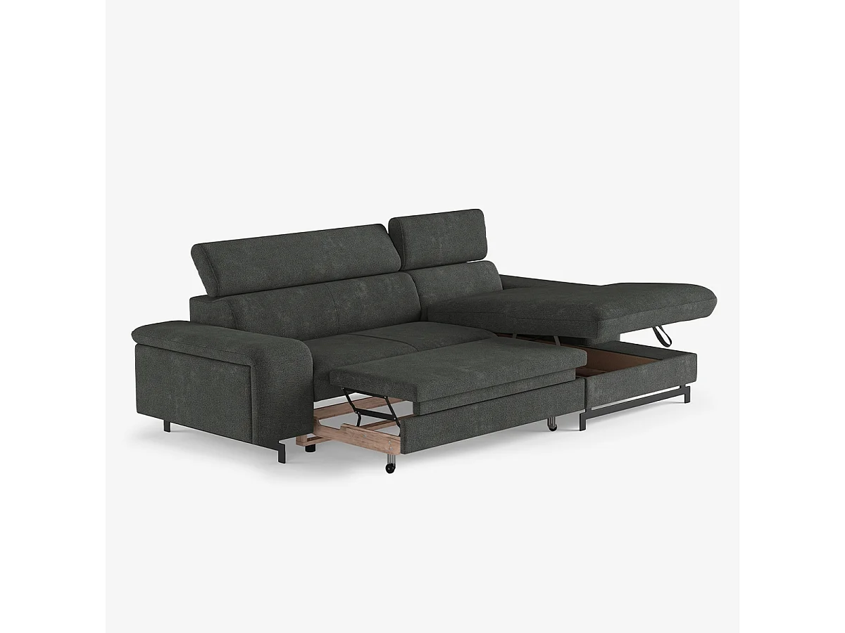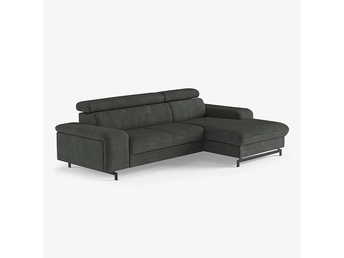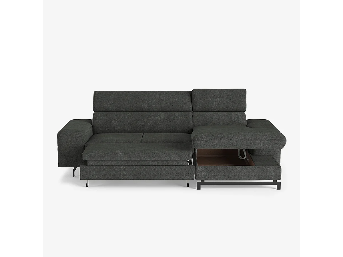 3-Sitzer Schlafsofa mit rechter Ottomane, Stauraum und verstellbarer Kopfstütze Miva - Dunkel Grau
