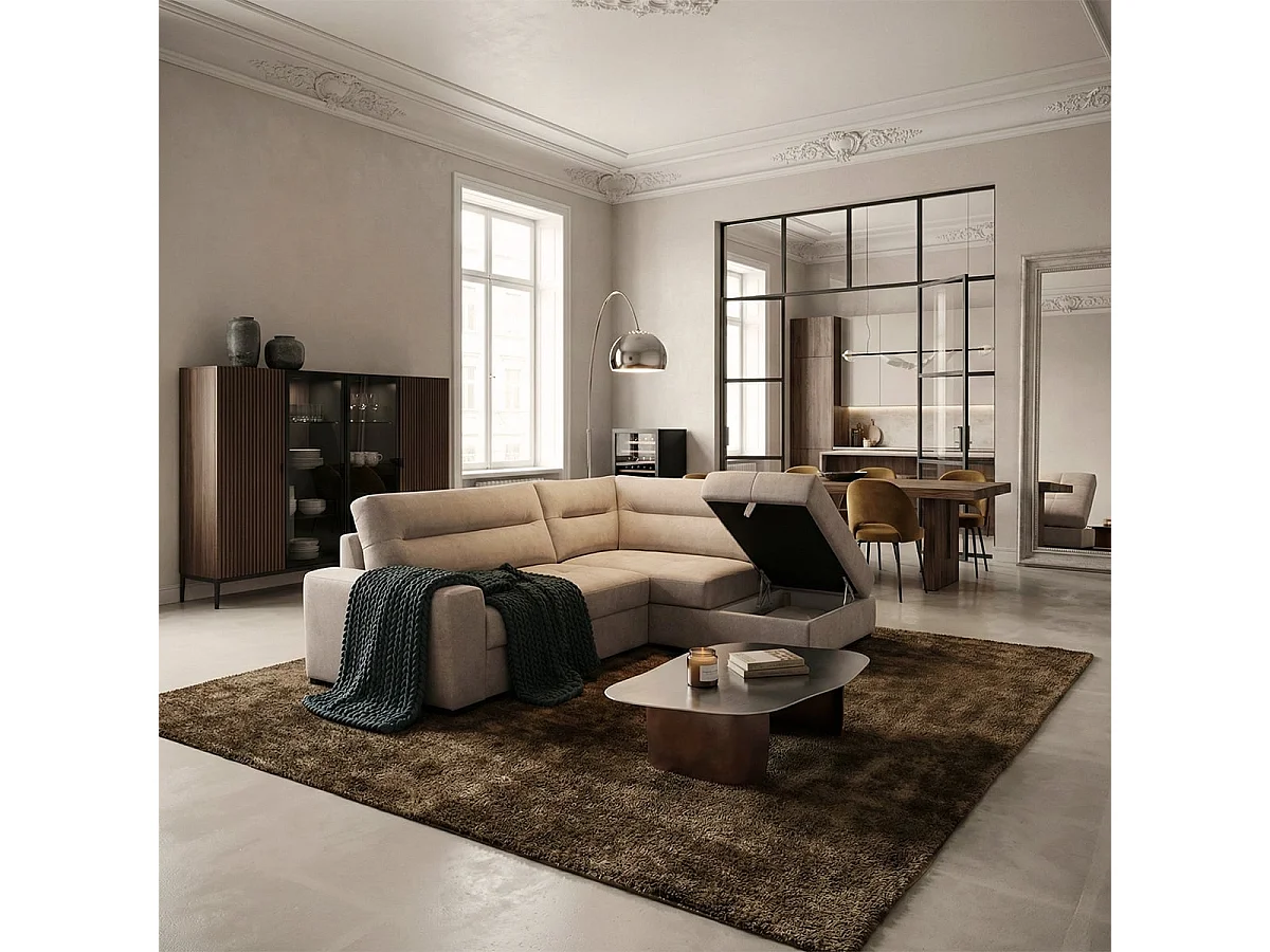 3-Sitzer Schlafsofa mit rechter Récamiere, Stoffbezug, Stauraum Kosta - Grau