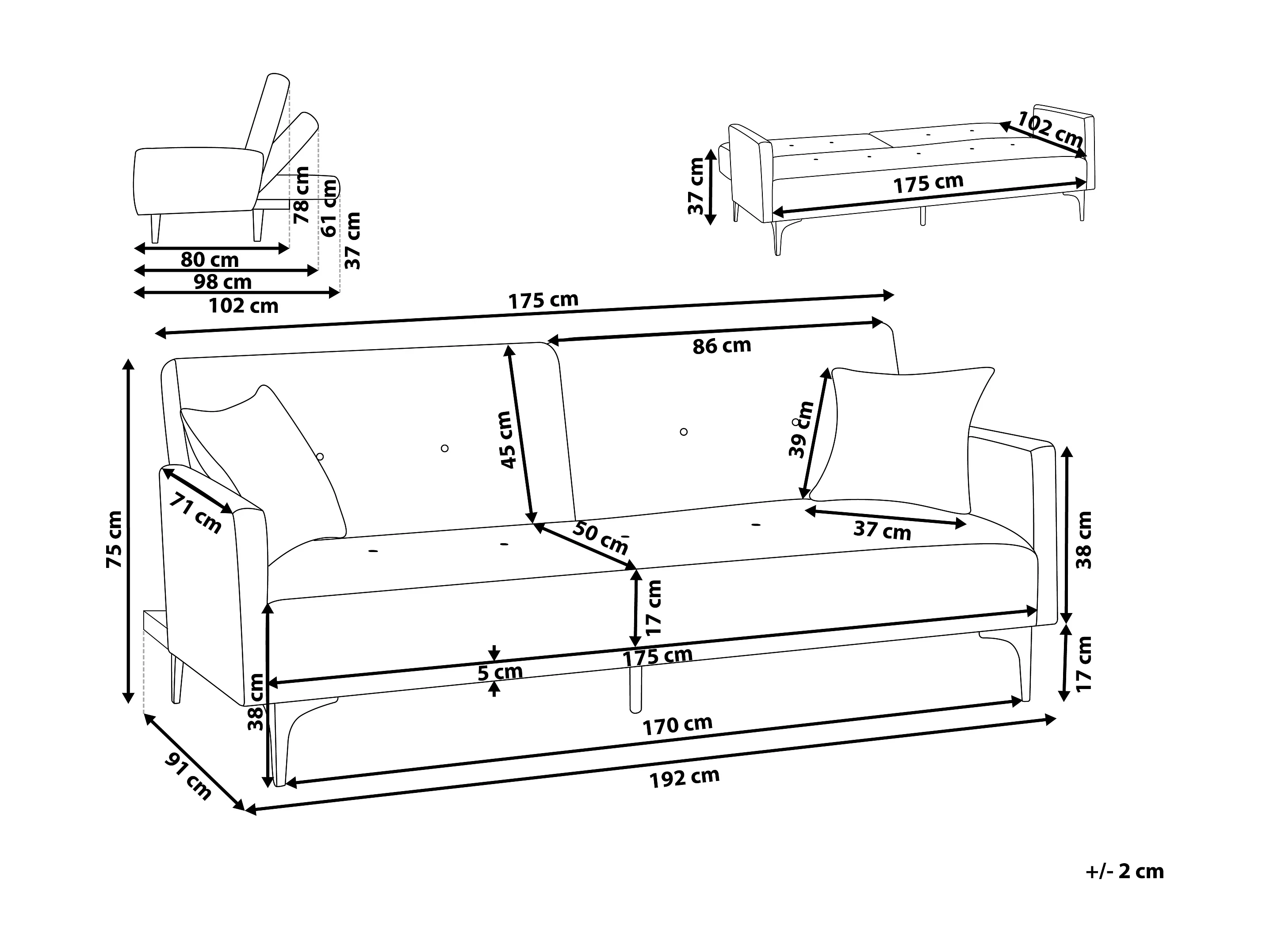 Schlafsofa LUCAN Stoff Blau 3-Sitzer