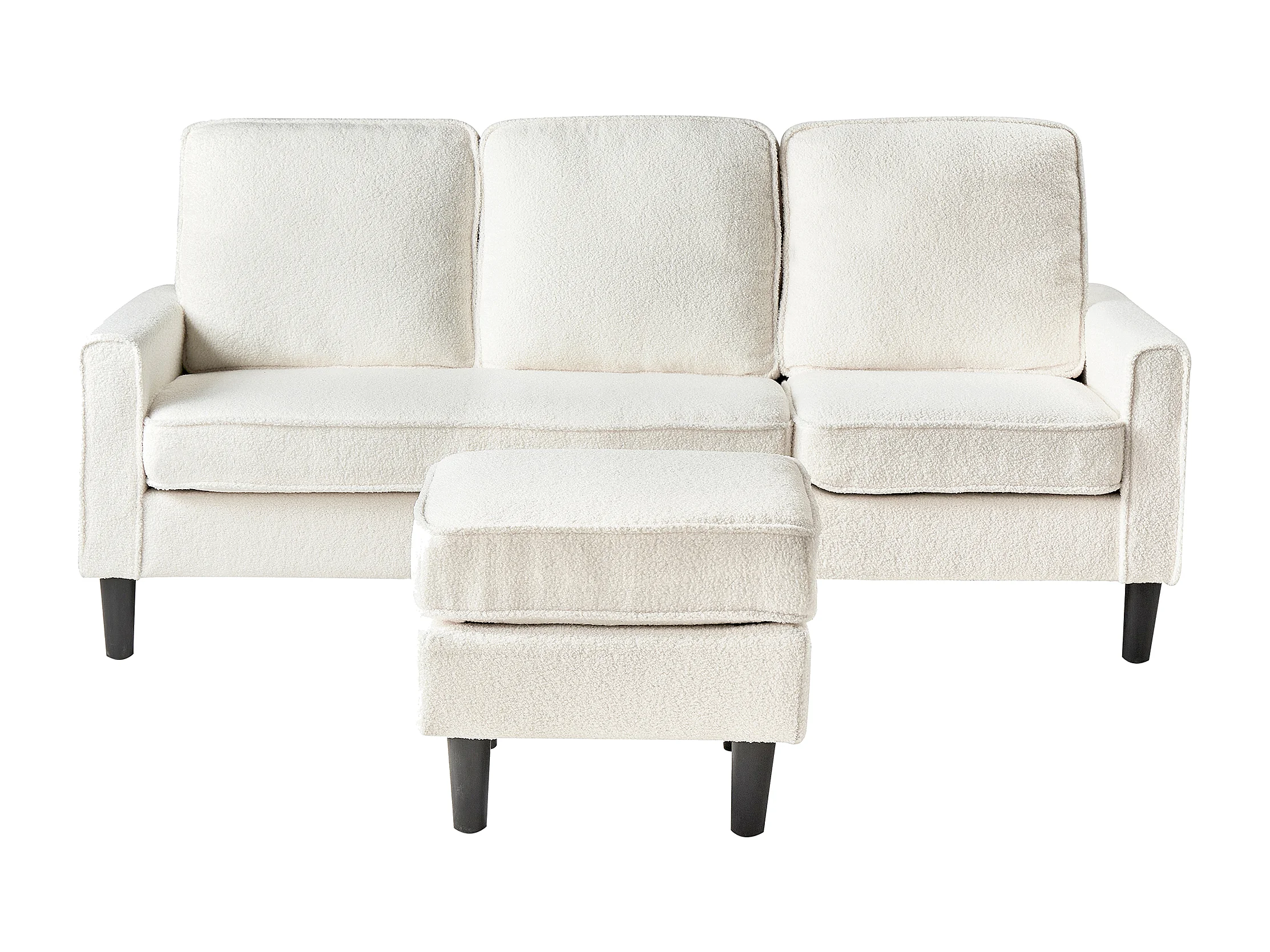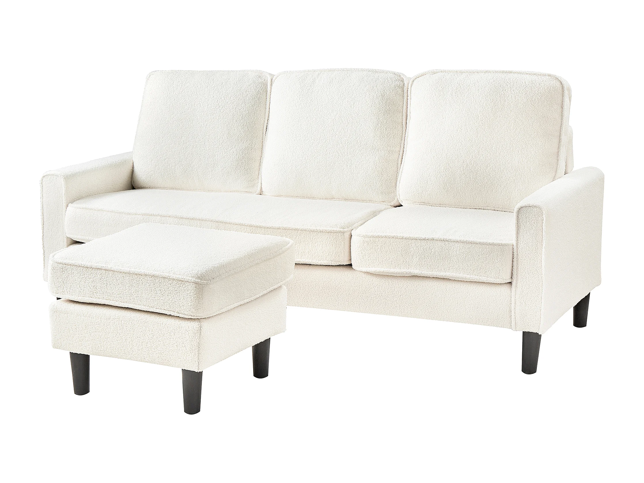Sofa AVESTA Bouclé Weiss mit Ottomane 3-Sitzer