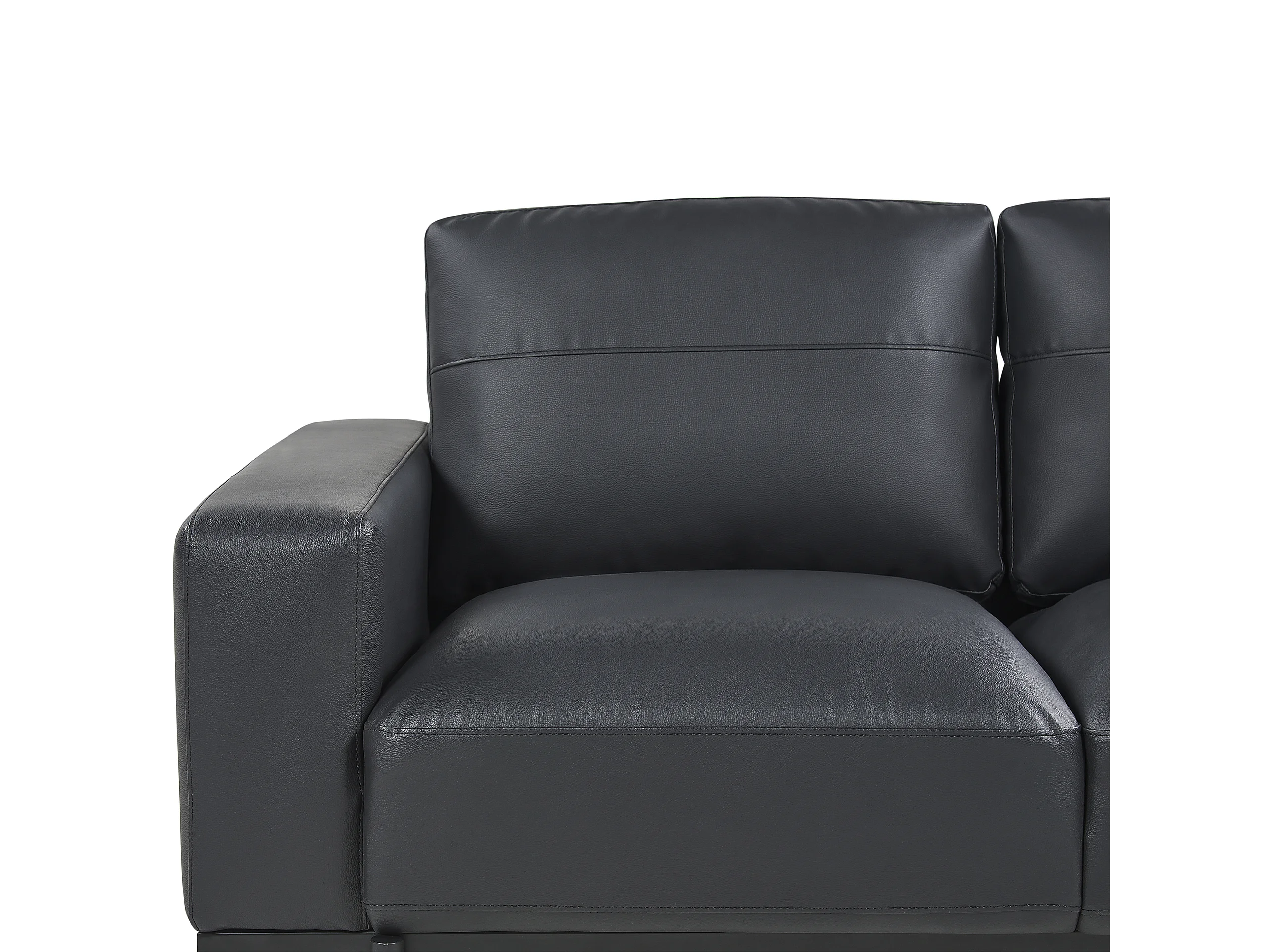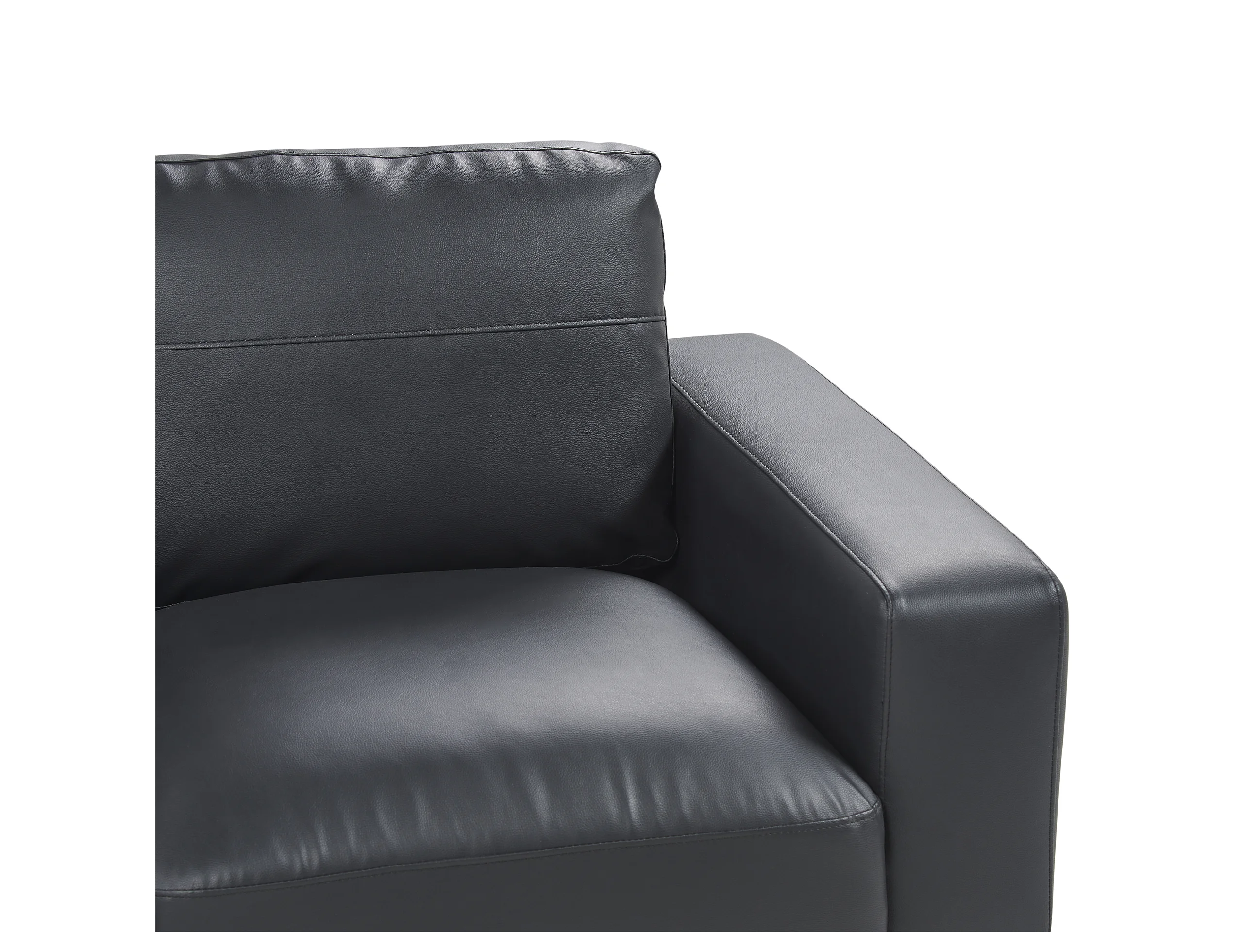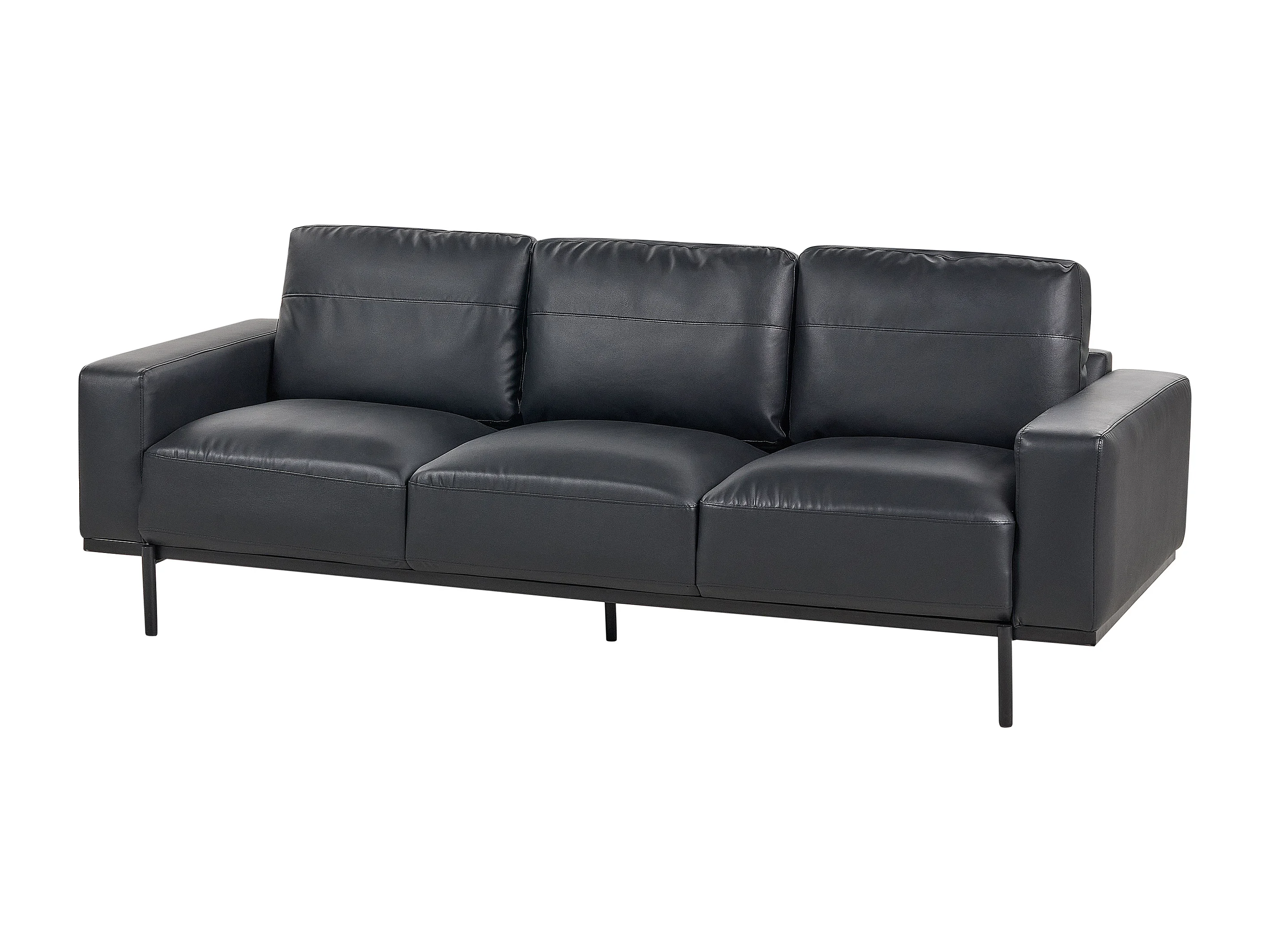 3-Sitzer Sofa Kunstleder schwarz mit Metallbeinen dicke Sitzkissen modern Sovik
