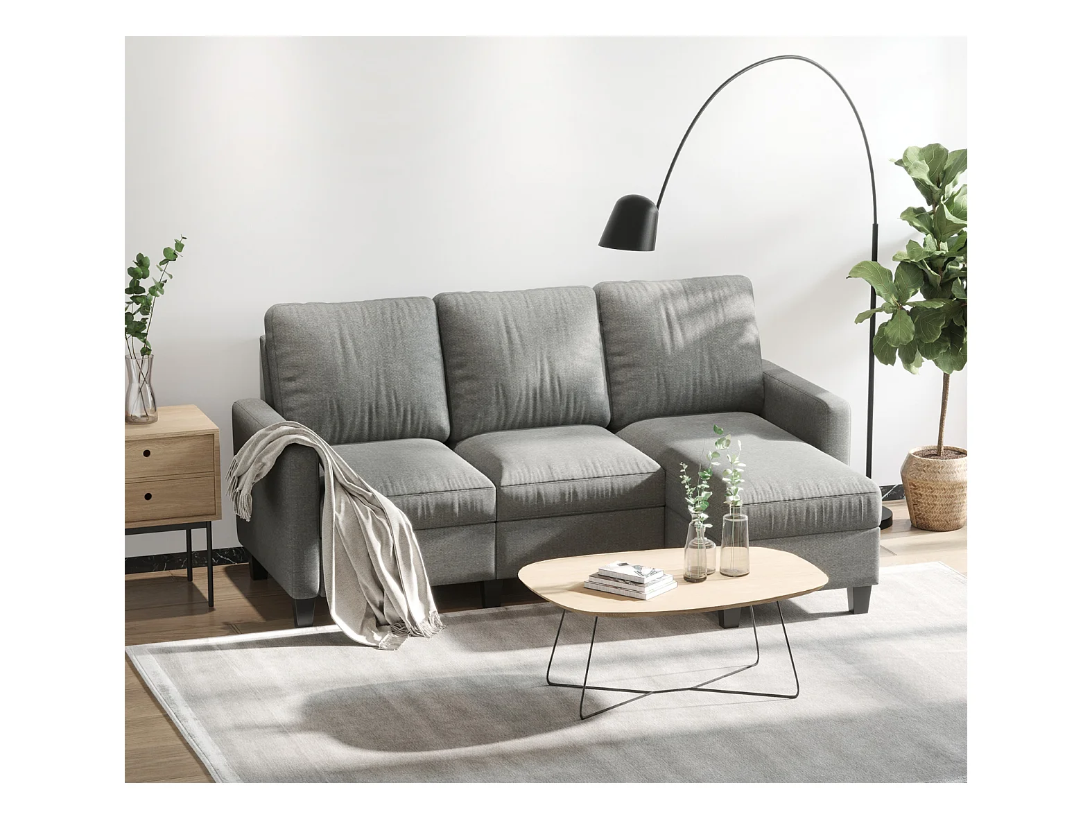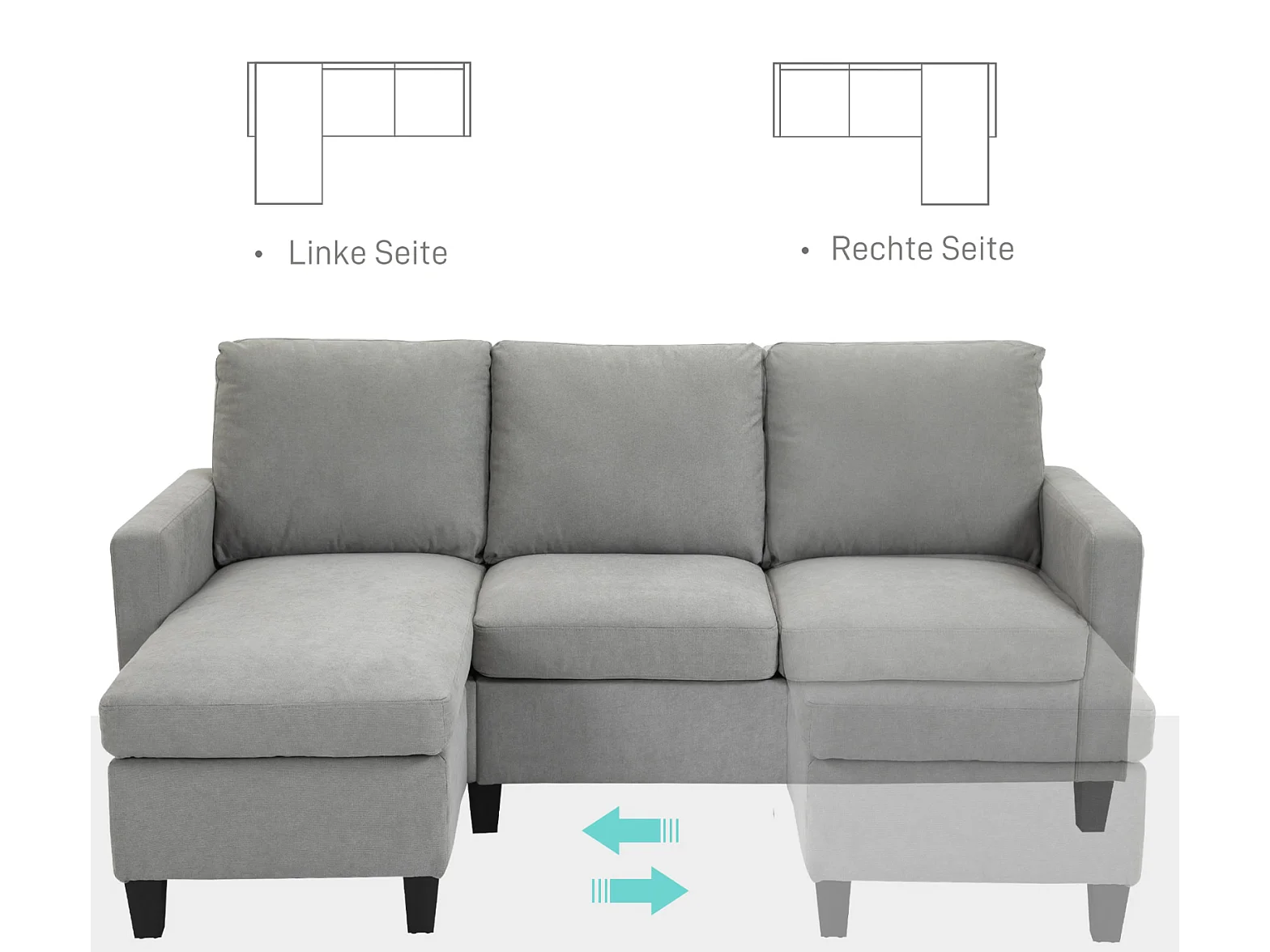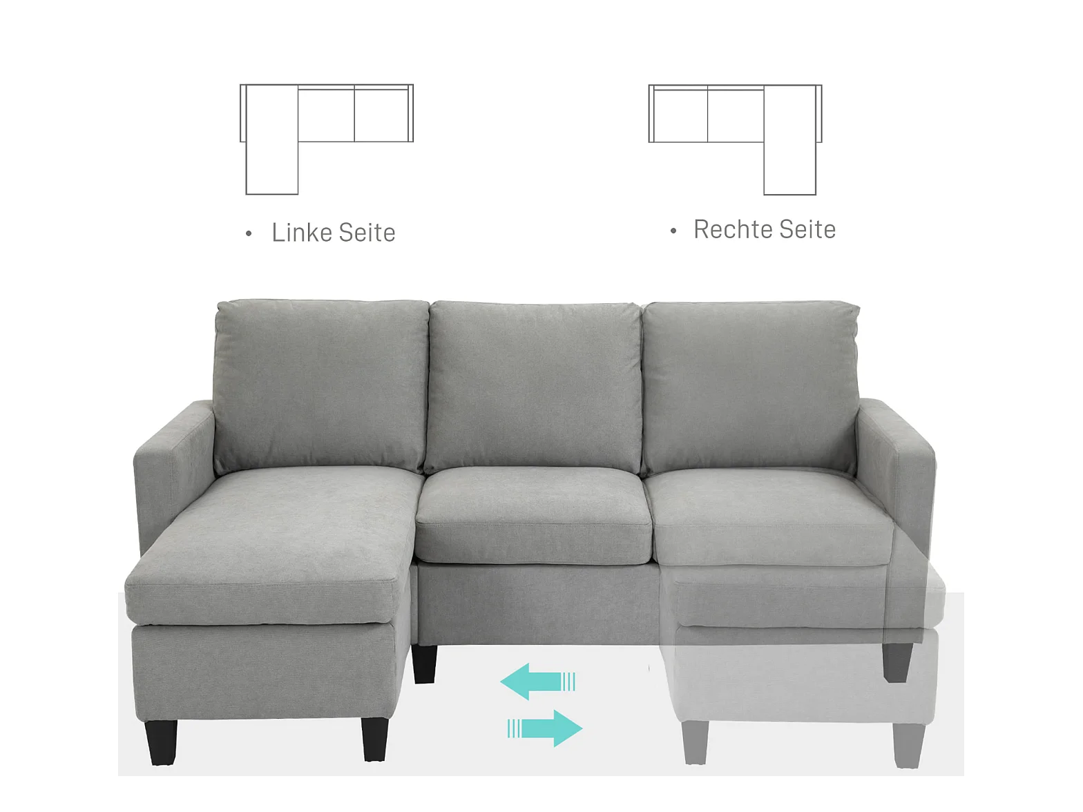 3-Sitzer-Sofa mit Bettkasten und Kissen, Ecksofa, Eckcouch, L-Form Couch