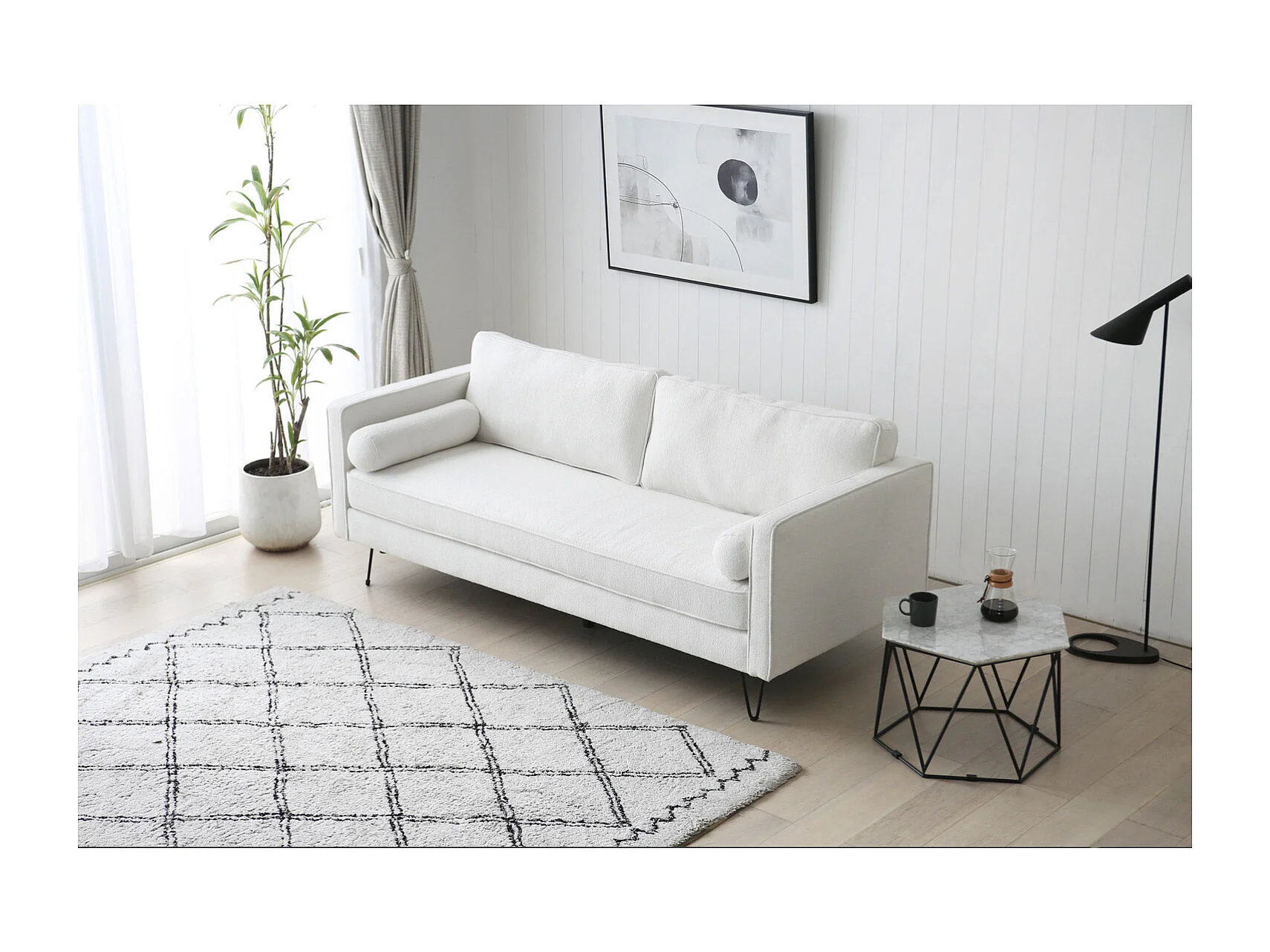 3-Sitzer-Sofa mit Metallfüßen, weiß CLOUD