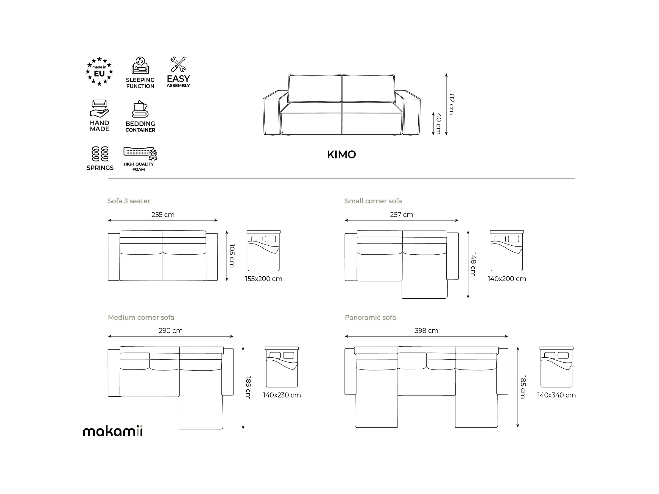 3-Sitzer Sofa mit Schlaffunktion - - Strukturstoff - Olive - KIMO