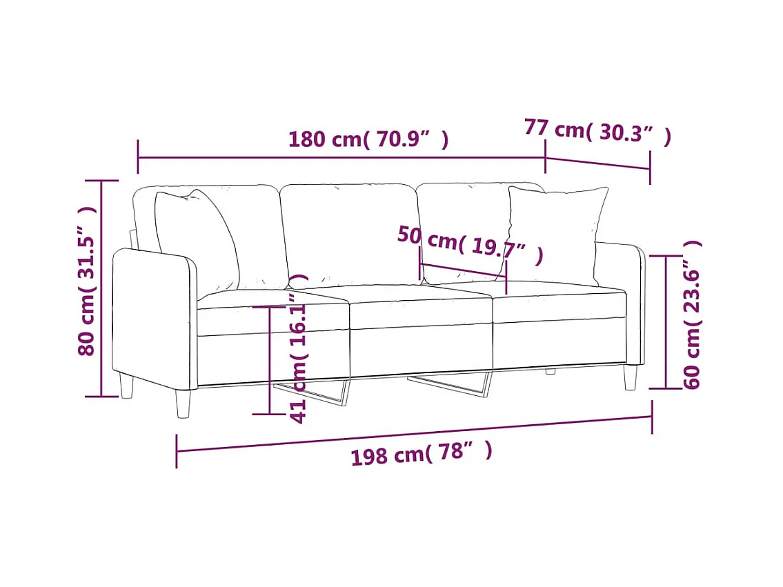 3-Sitzer-Sofa mit Zierkissen Schwarz 180 cm Stoff
