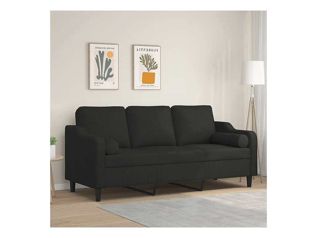 3-Sitzer-Sofa mit Zierkissen Schwarz 180 cm Stoff