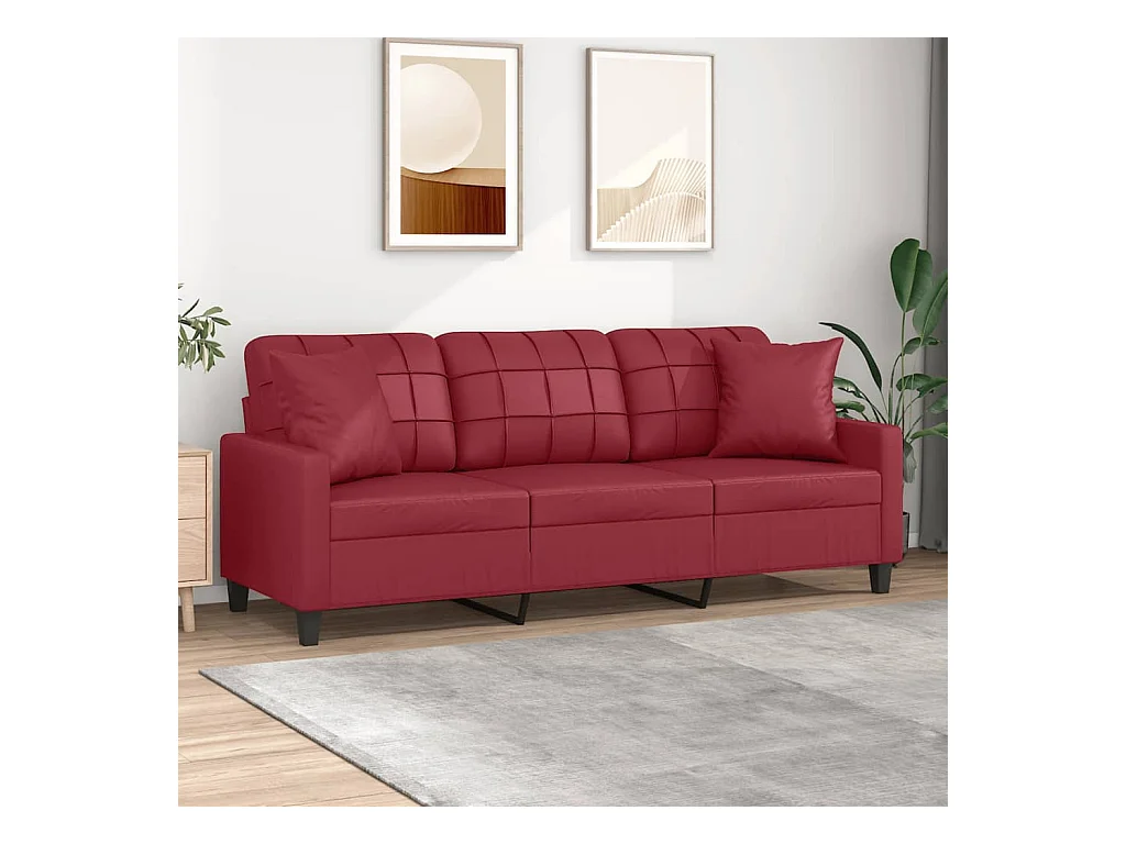 3-Sitzer-Sofa mit Zierkissen Weinrot 180 cm Kunstleder