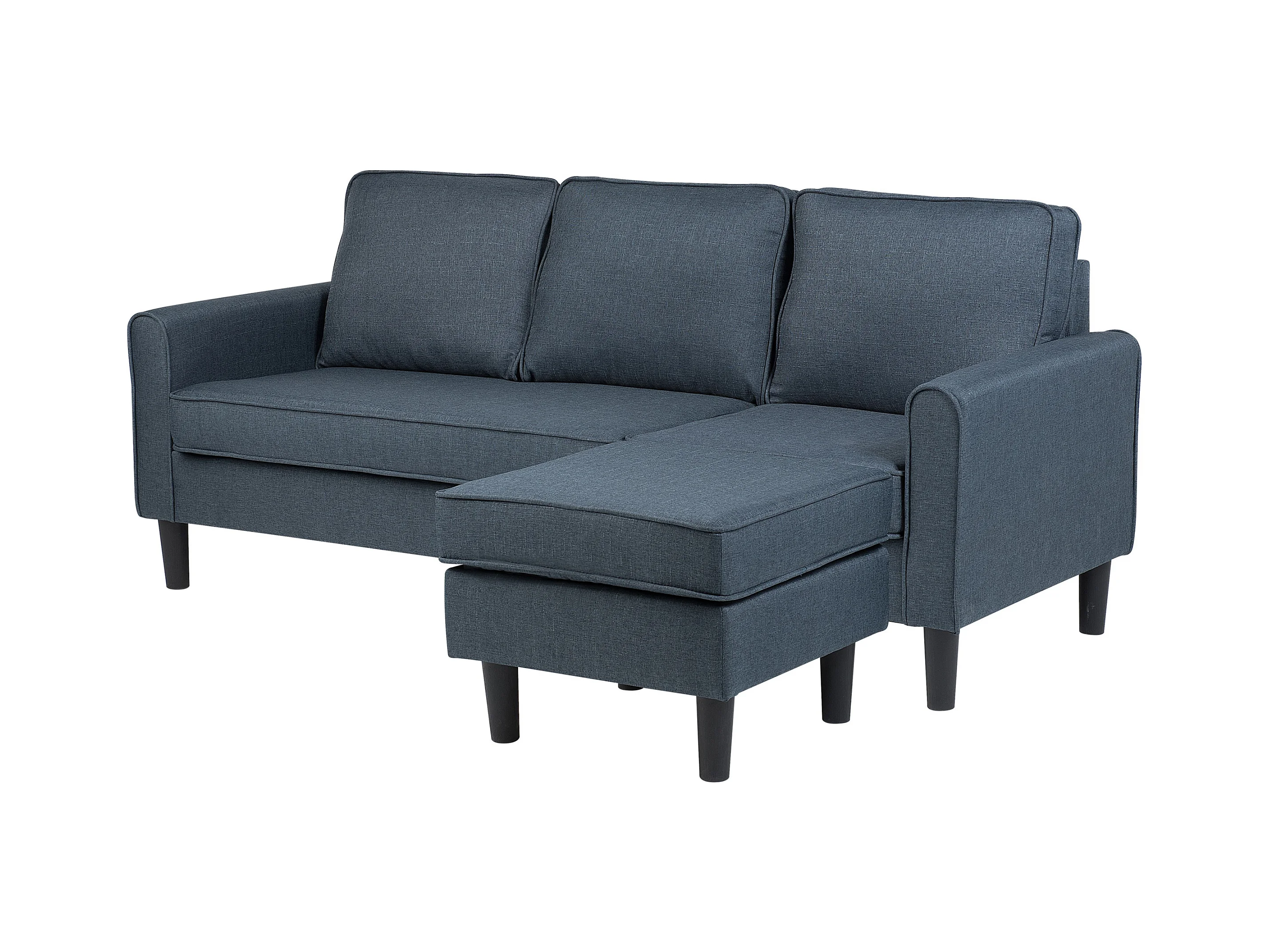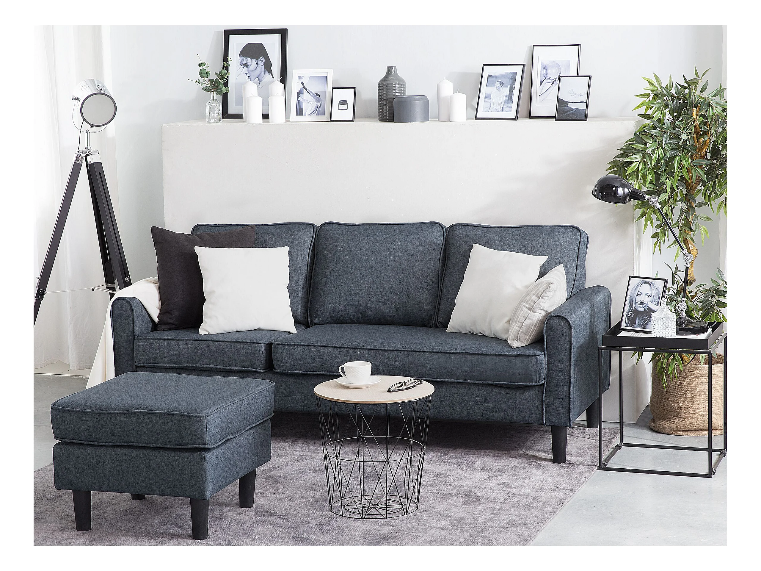 3-Sitzer Sofa Stoff dunkles Grau mit Ottomane Armlehnen schwarze Beine Avesta