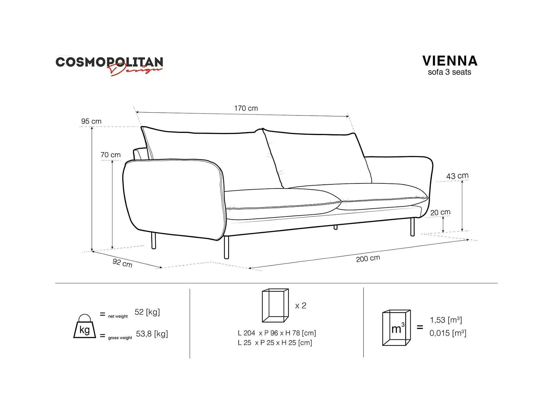 Cosmopolitan Design - 3-Sitzer Sofa "Vienna" aus strukturiertem Stoff dunkelgrau - 200x92x95cm