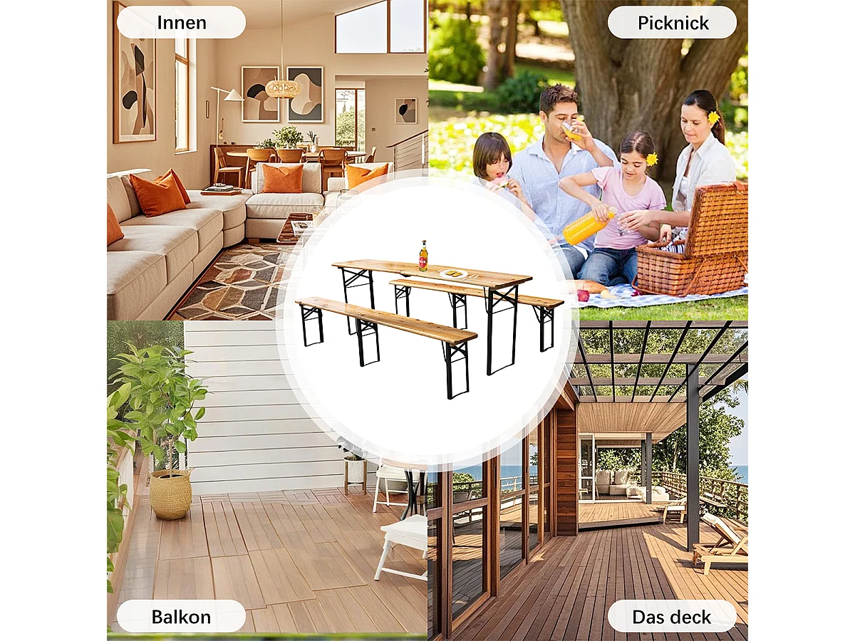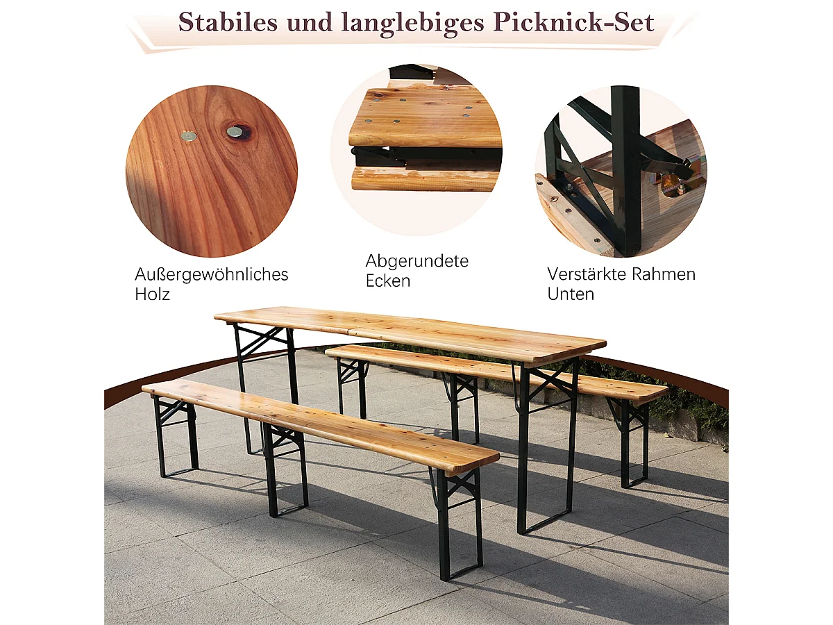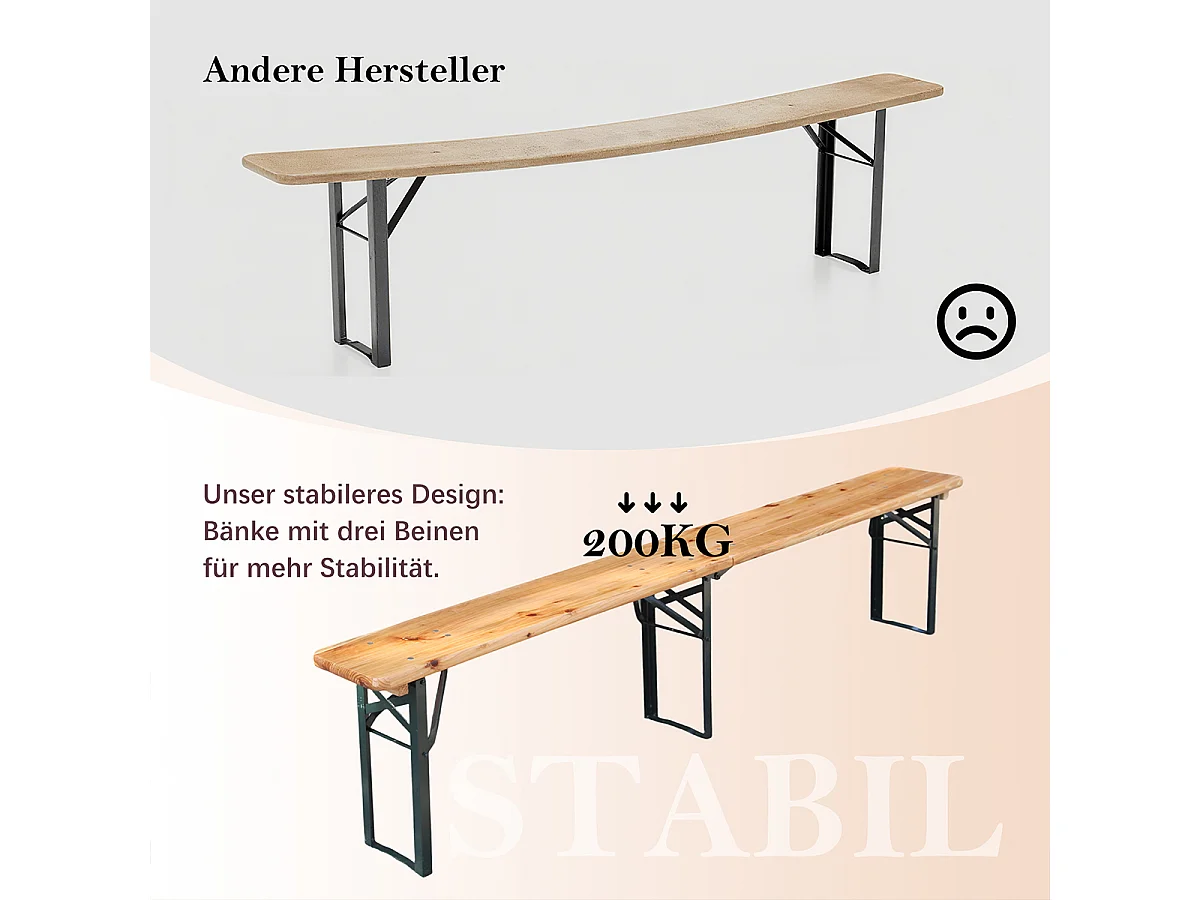 3-teilig Bierzeltgarnitur mit 1 Klapptisch + 2 Bierbänke Faltbare Wetterfest Biertischgarnitur bis 200 kg