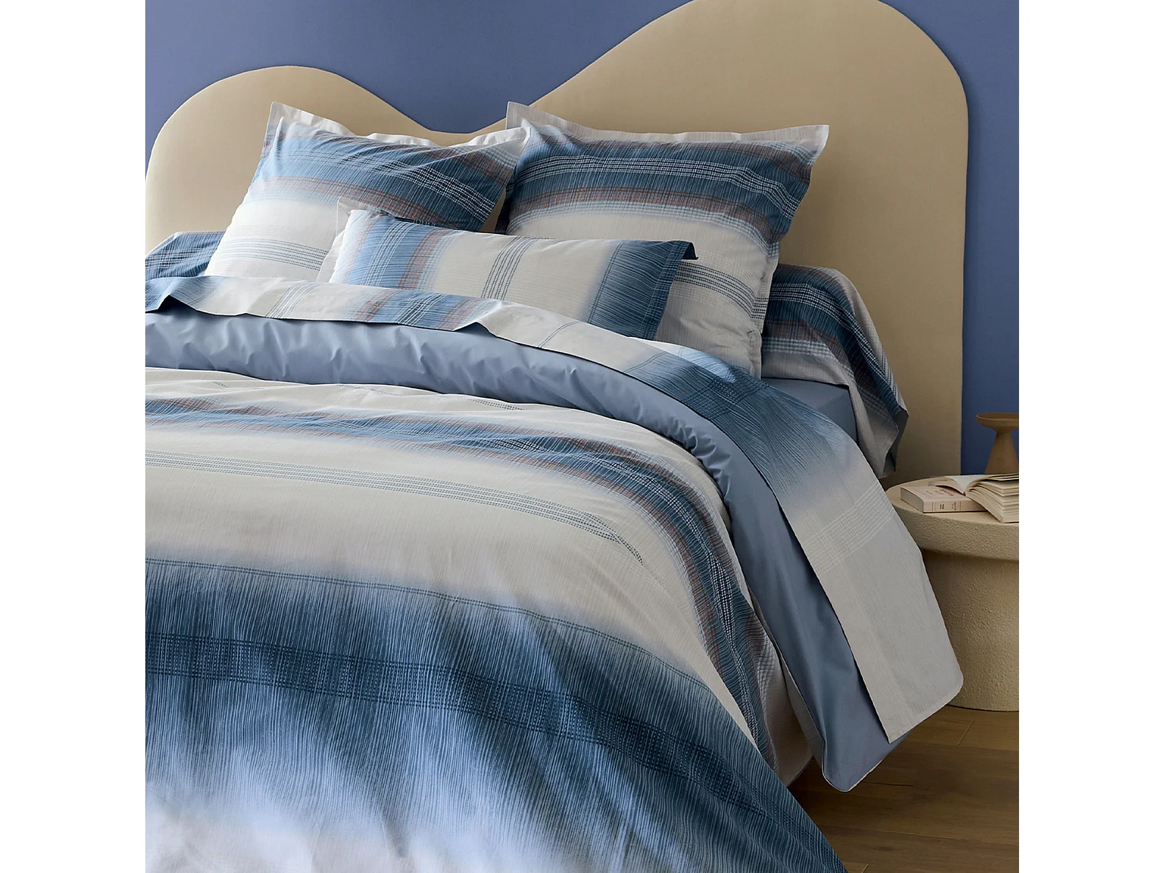 3-teilige Bettwäsche aus Baumwollperkal mit gestreiftem Farbverlauf, Bezug und Kissenbezüge
