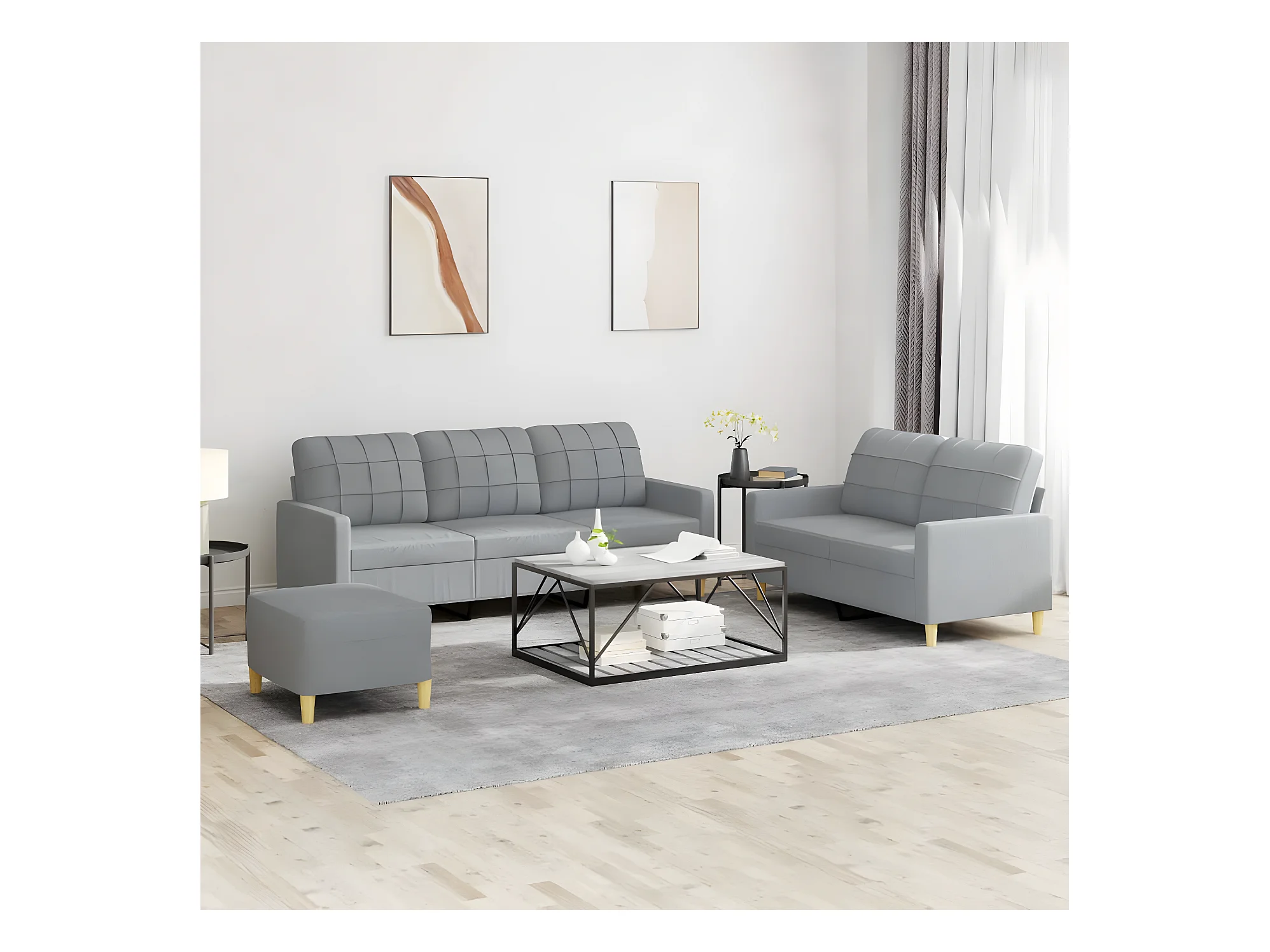 3-teiliges Sofaset mit Kissen aus hellgrauem Stoff