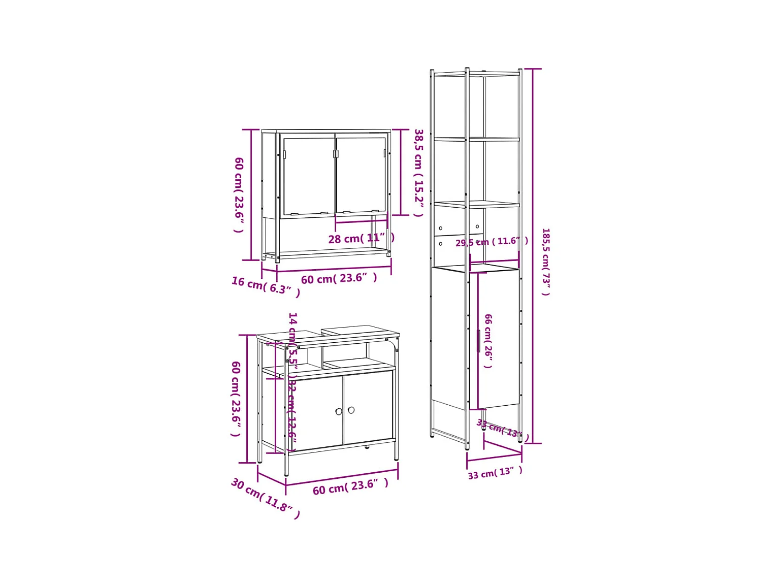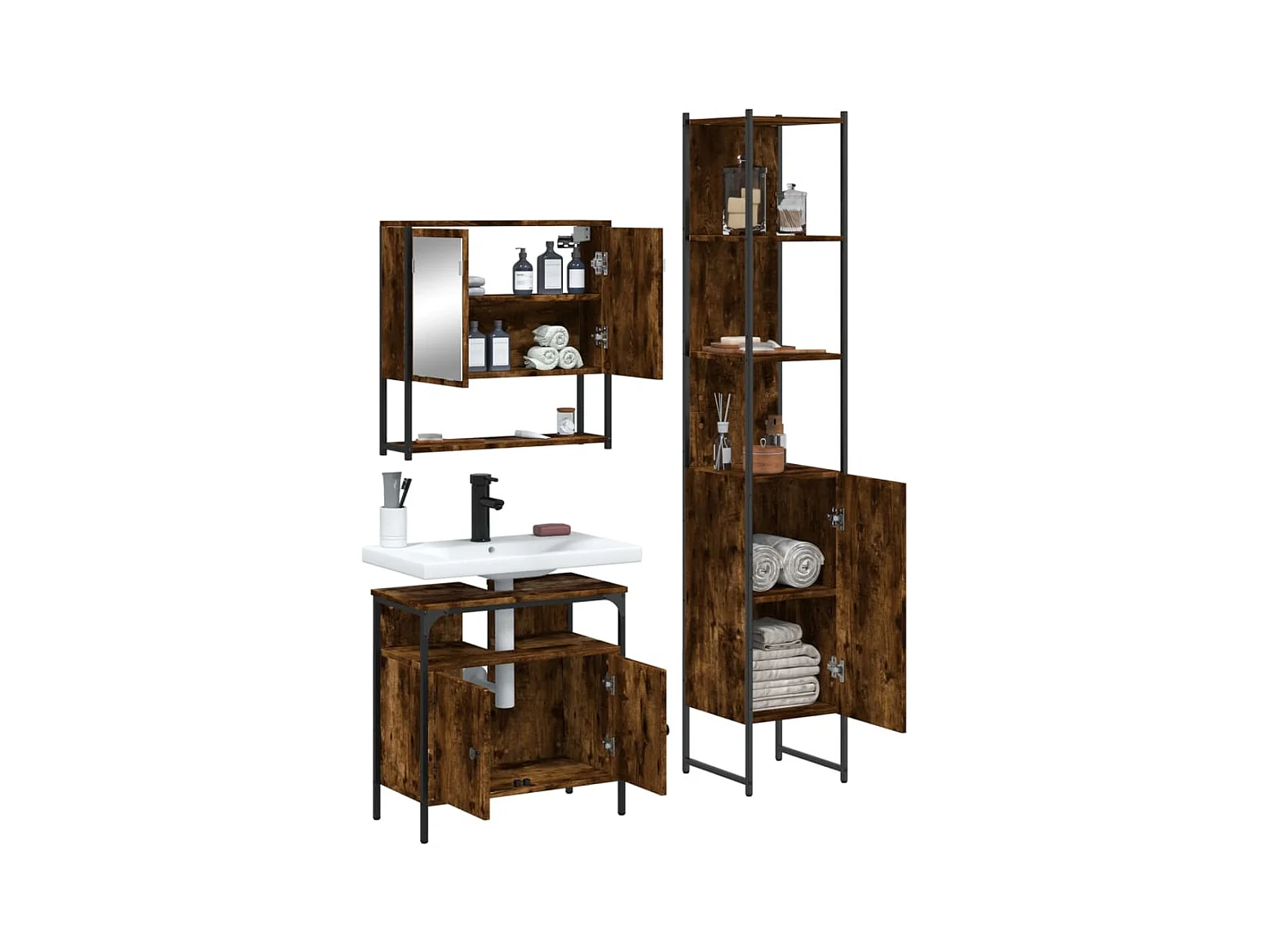 3-tlg. Badmöbel-Set Räuchereiche Holzwerkstoff