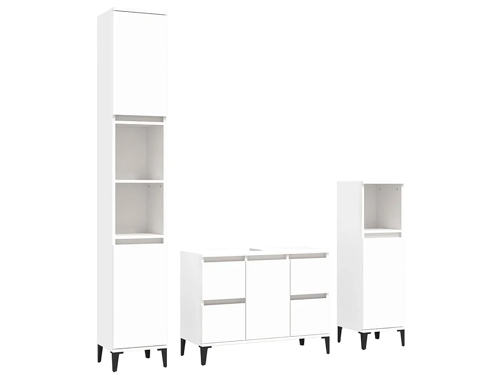 3-tlg. Badmöbel-Set Weiß Holzwerkstoff