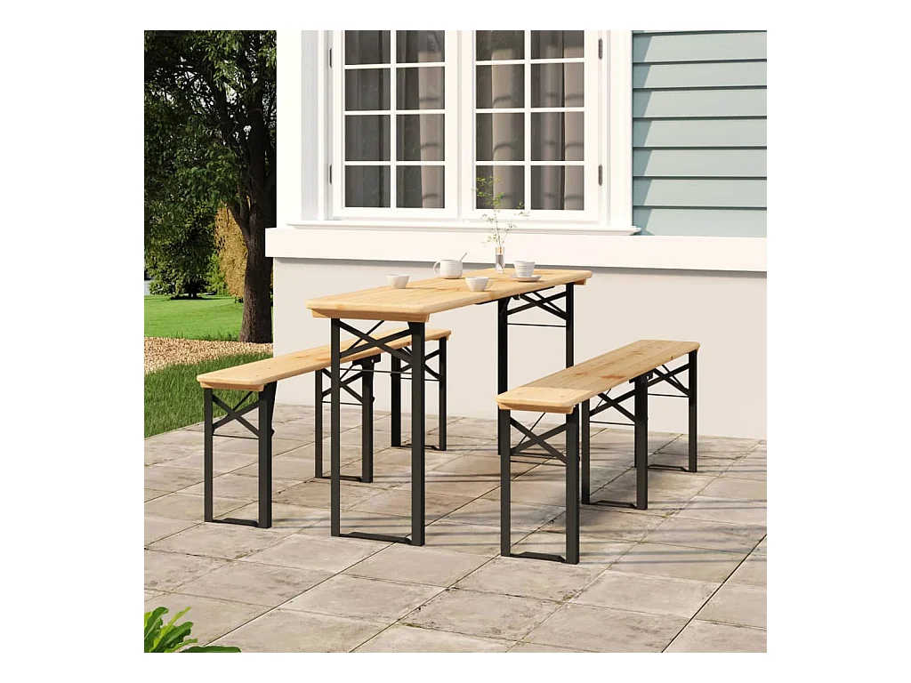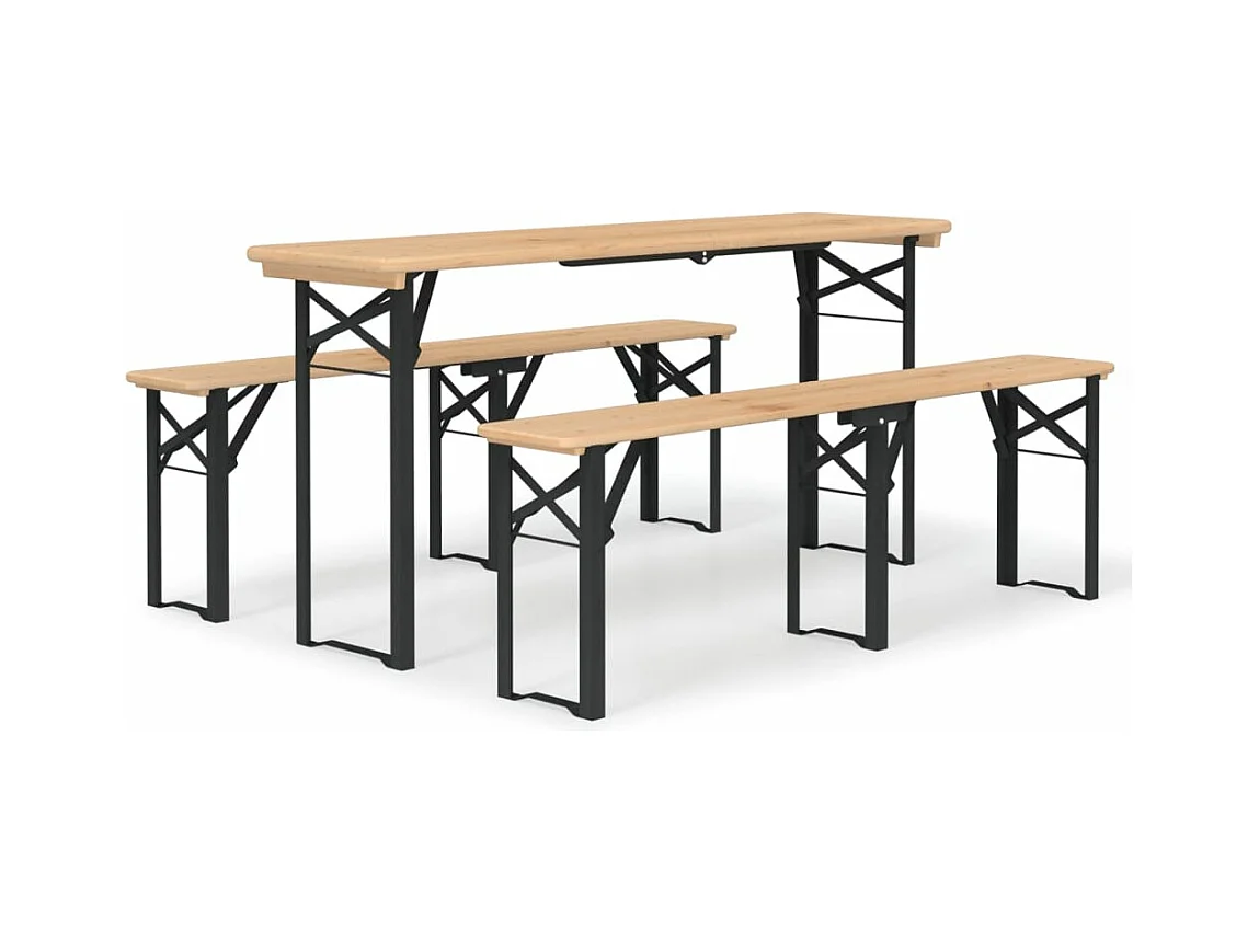 3-tlg. Biertisch-Set Klappbar Massivholz Tanne