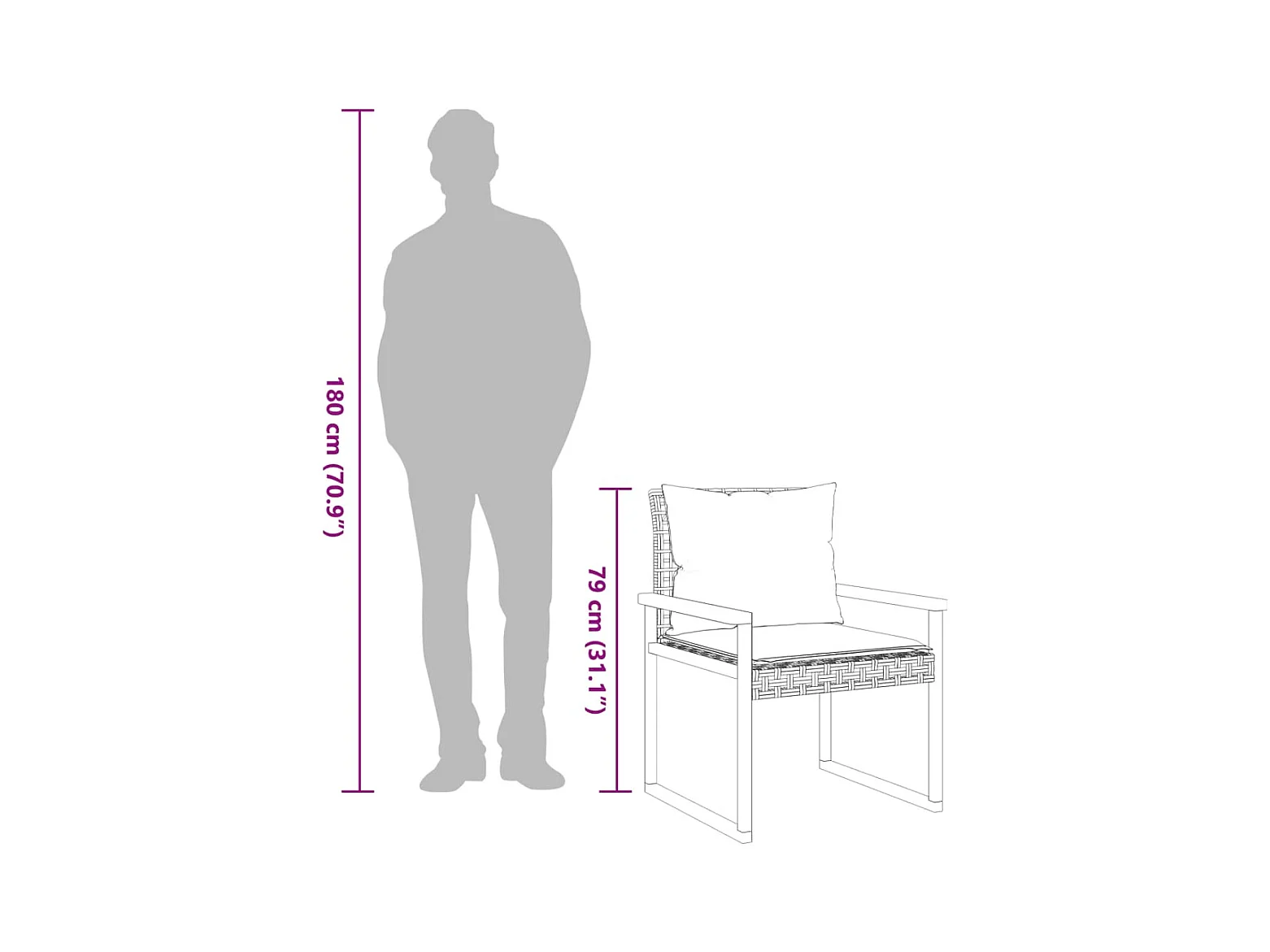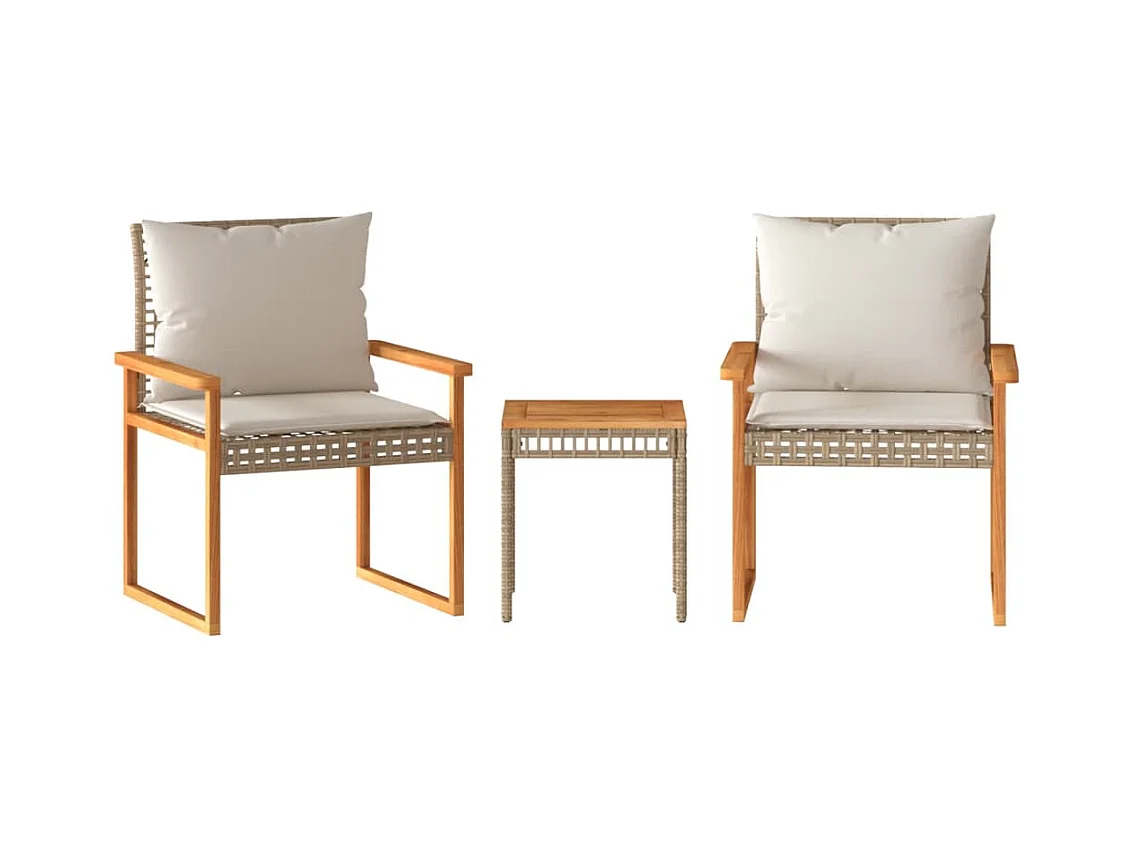 3-tlg. Bistro-Set mit Kissen Beige Poly Rattan Akazienholz