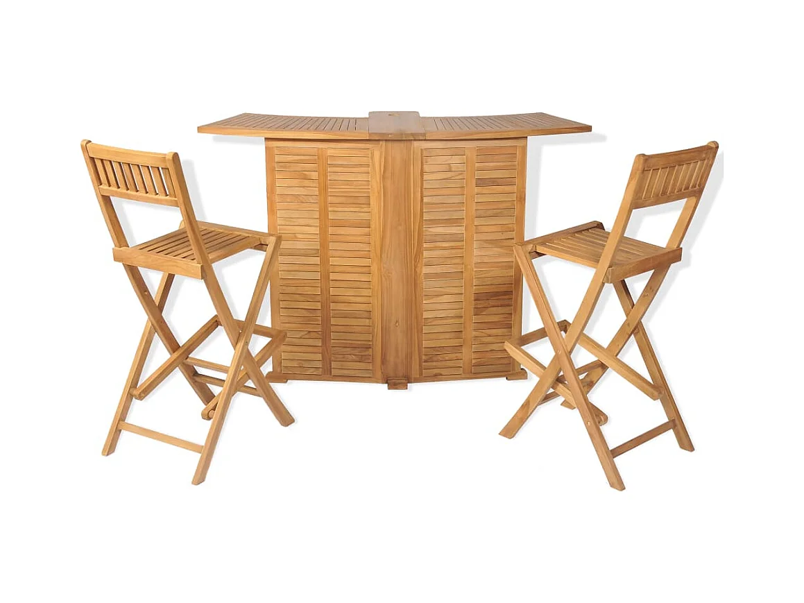 3-tlg. Bistro-Set mit Klappstühlen Massivholz Teak