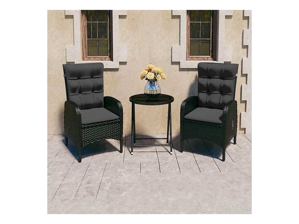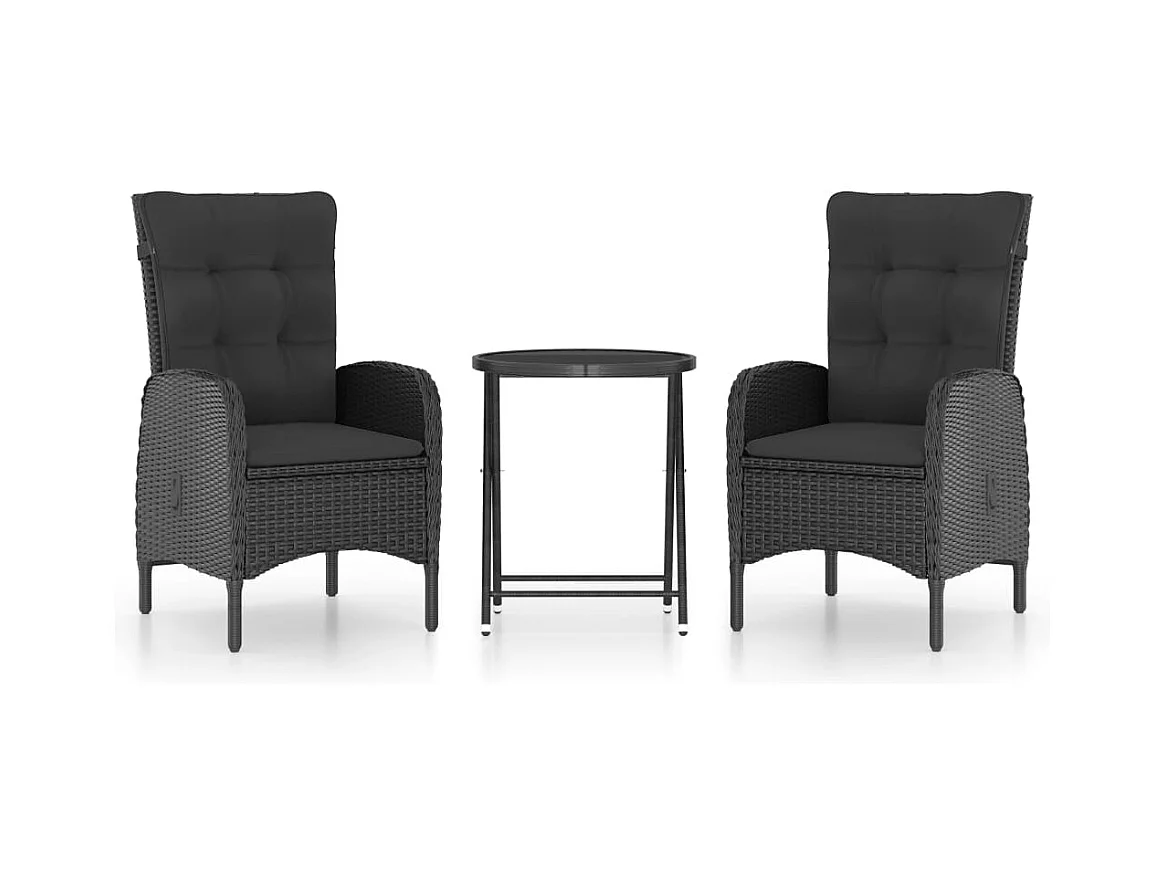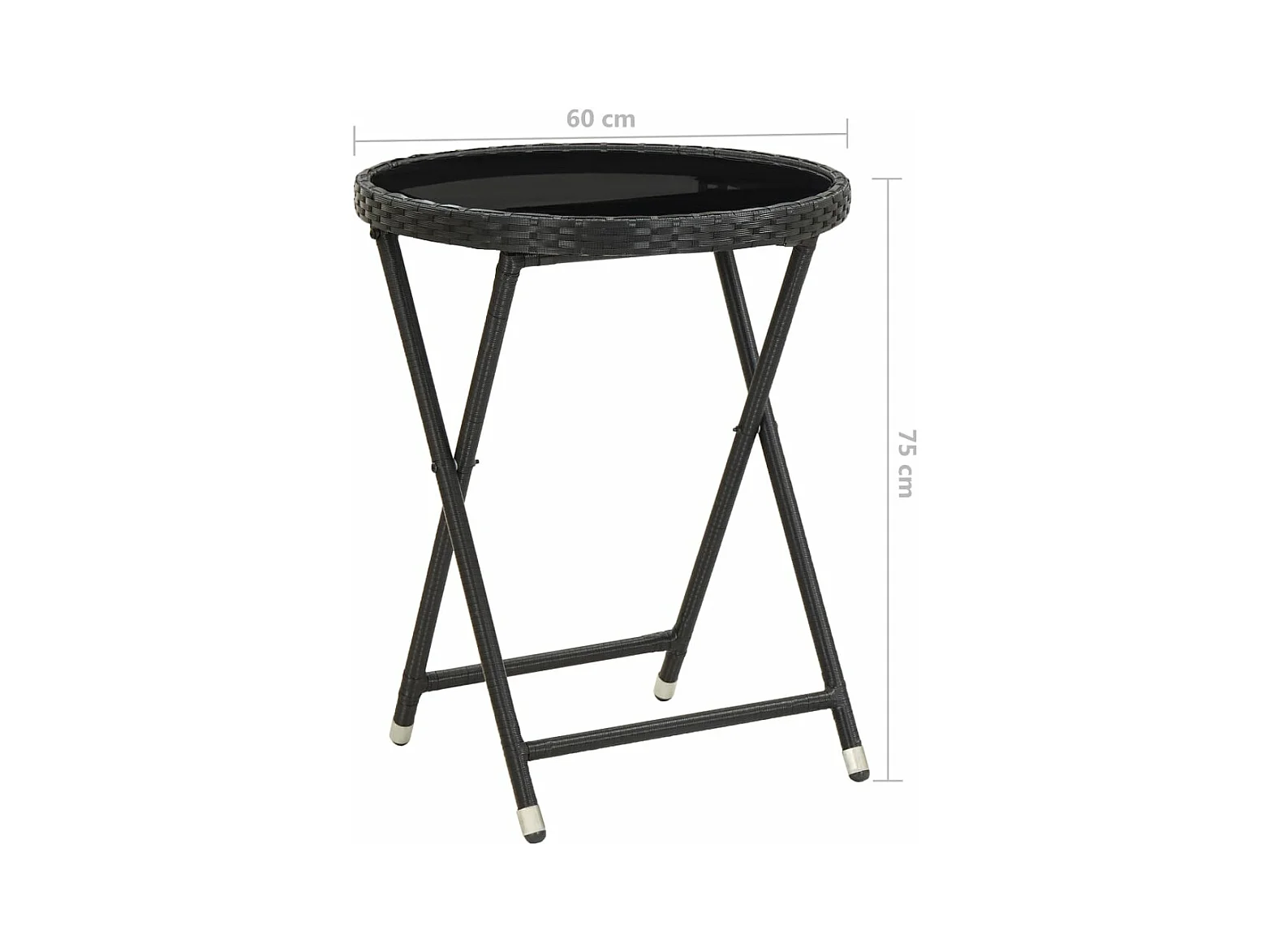 3-tlg. Bistro-Set Poly Rattan und Glas Schwarz