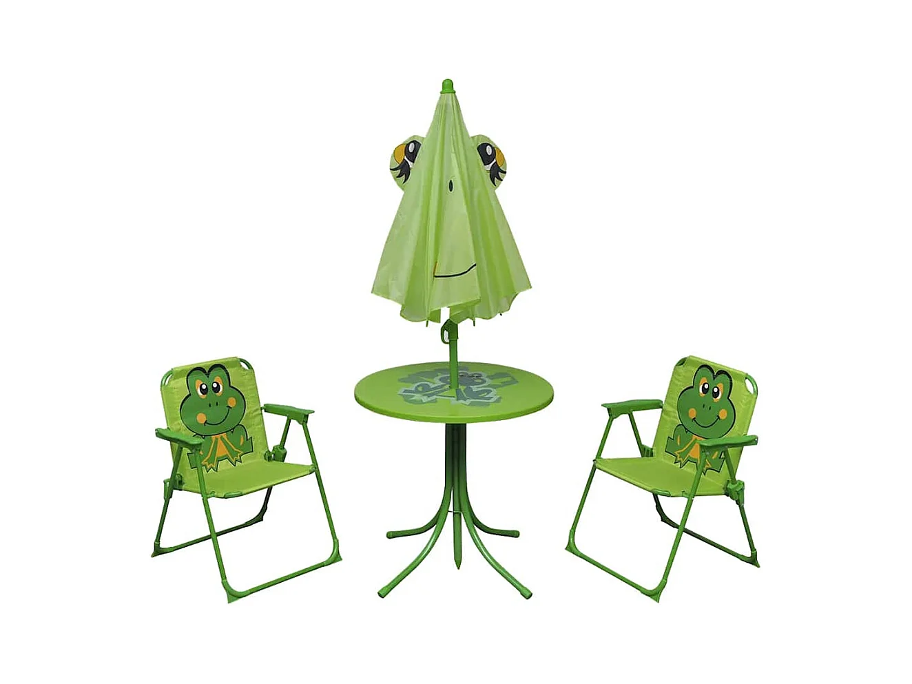 3-tlg. Garten-Bistro-Set für Kinder mit Sonnenschirm Grün
