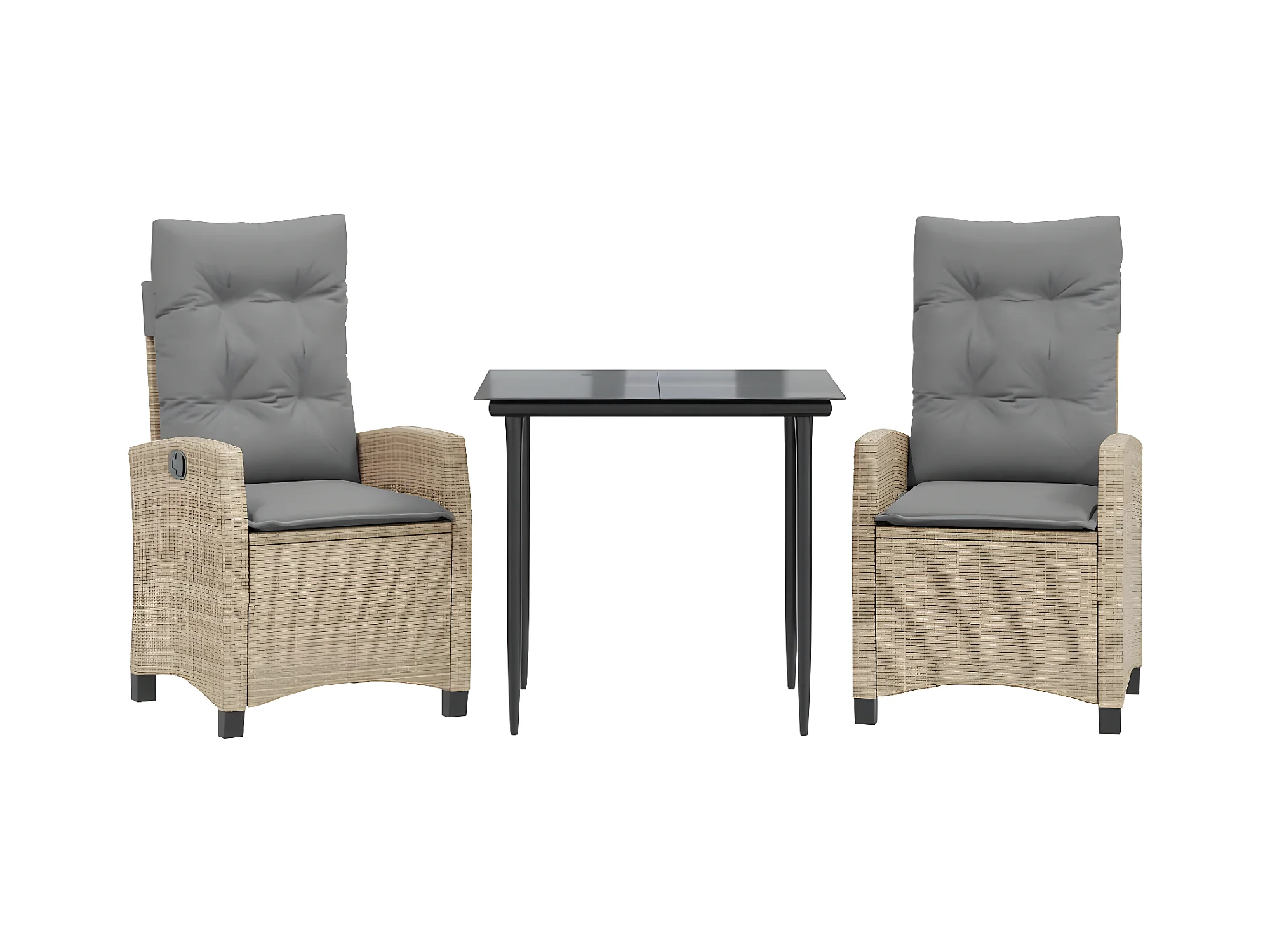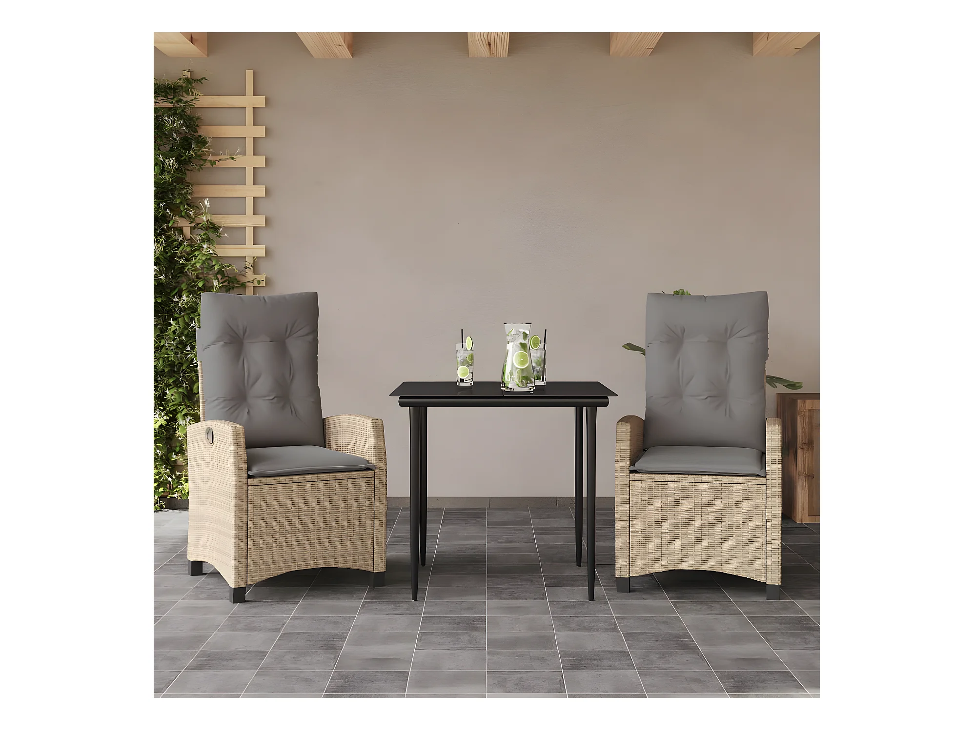 3-tlg. Garten-Essgruppe,Gartensitzgruppe mit Kissen Beigemischung Poly Rattan -gkd26326