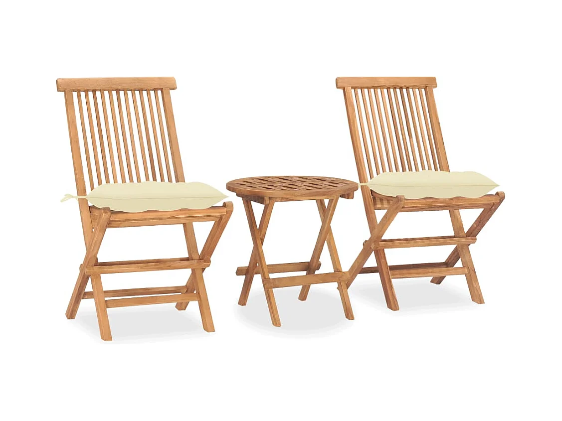 3-tlg. Garten-Essgruppe,Gartensitzgruppe mit Kissen Klappbar Massivholz Teak -gkd55566
