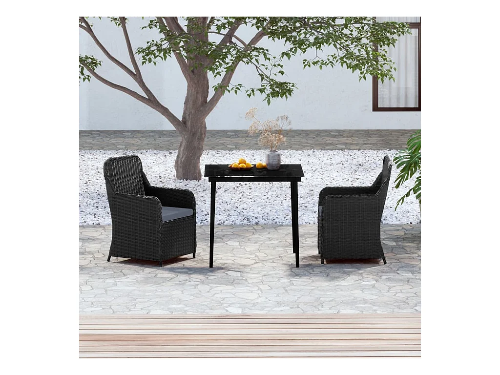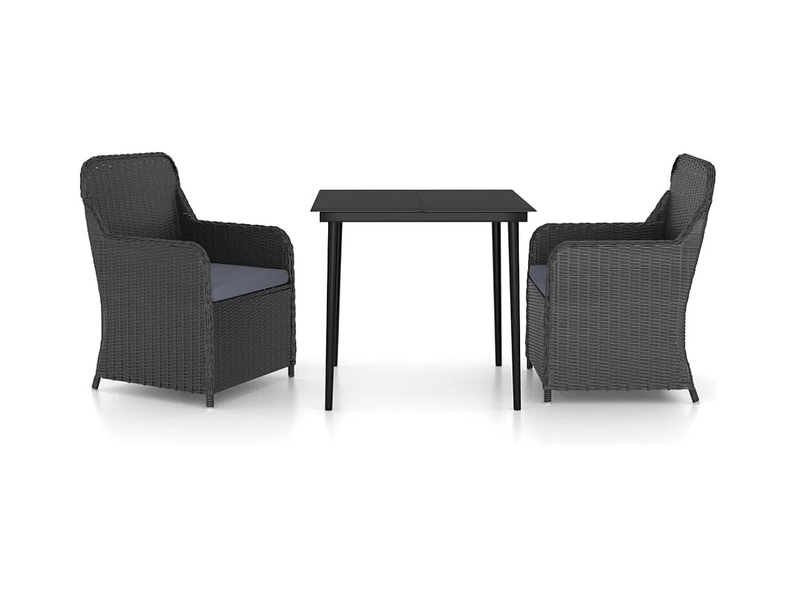 3-tlg. Garten-Essgruppe,Gartensitzgruppe mit Kissen Schwarz -gkd93724