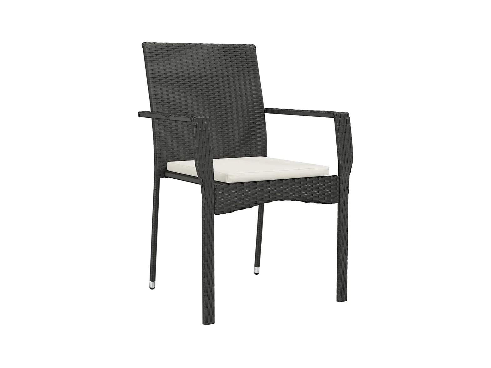 3-tlg. Garten-Essgruppe,Gartensitzgruppe mit Kissen Schwarz Poly Rattan -gkd21811