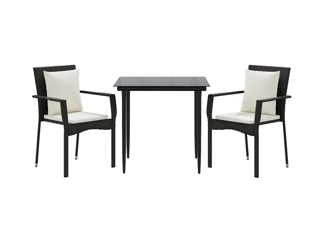 3-tlg. Garten-Essgruppe,Gartensitzgruppe mit Kissen Schwarz Poly Rattan -gkd64511